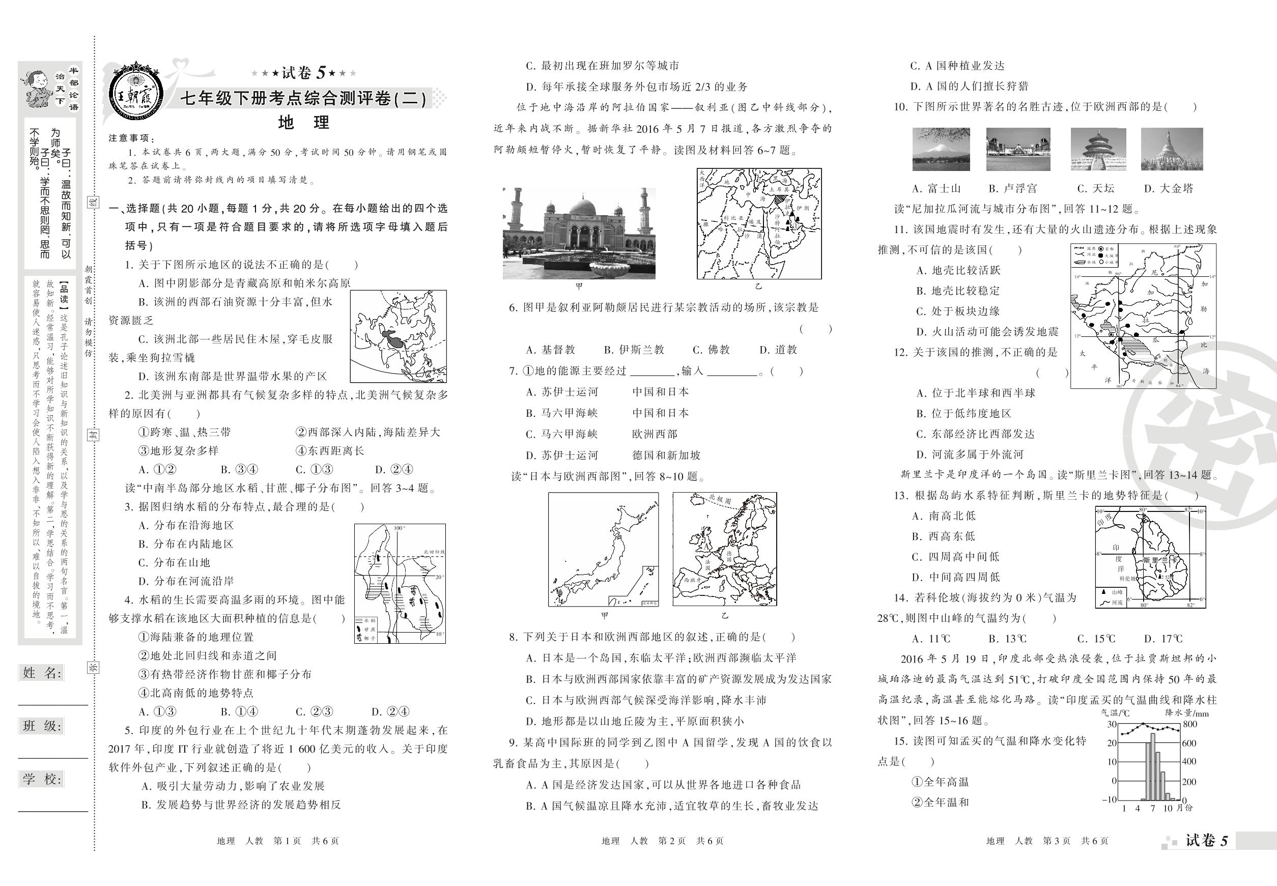 王朝霞期末测评卷——考点综合测评卷(二)七年级下册地理(人教版)【5】