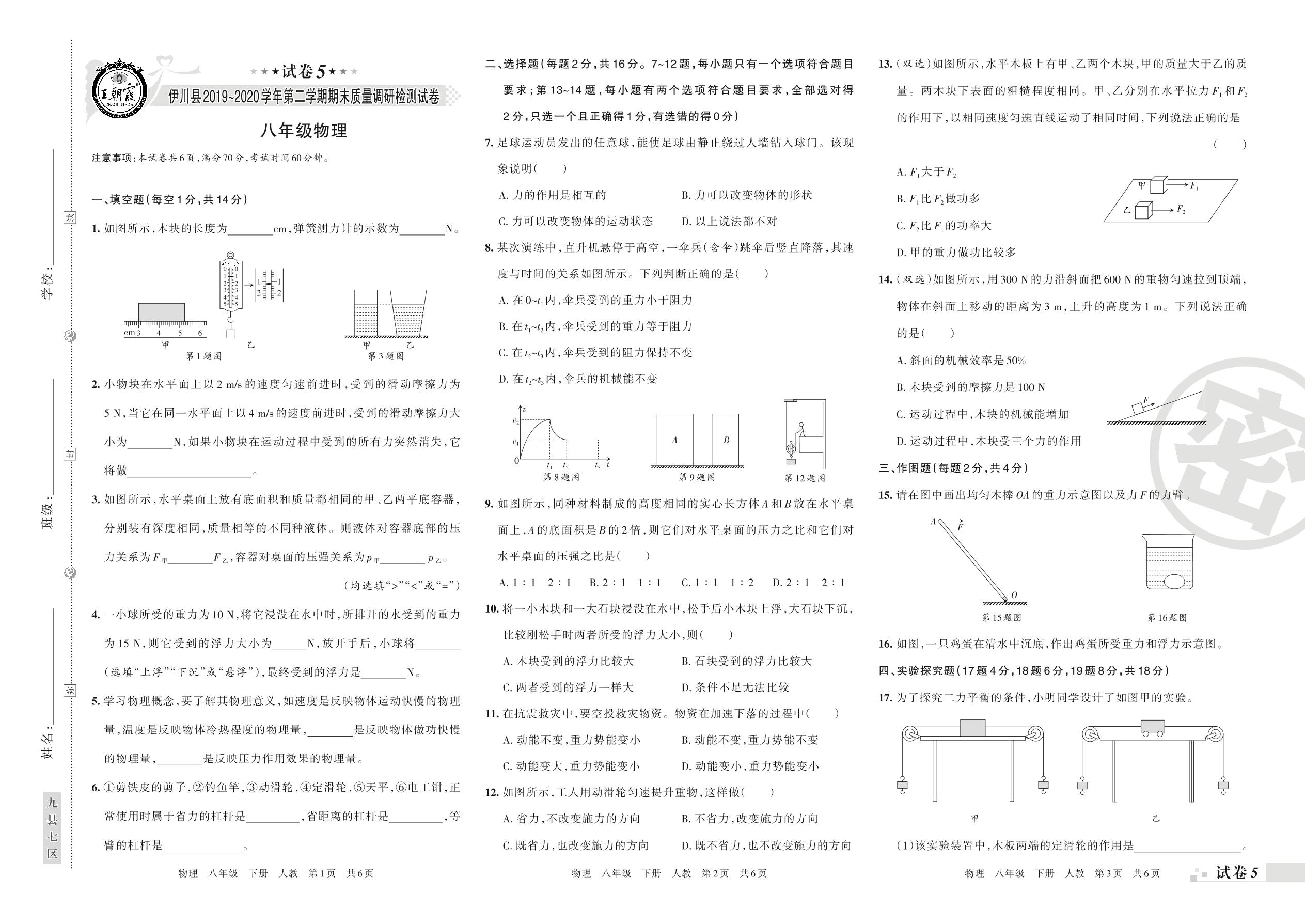 八年级物理人教版下册期末卷