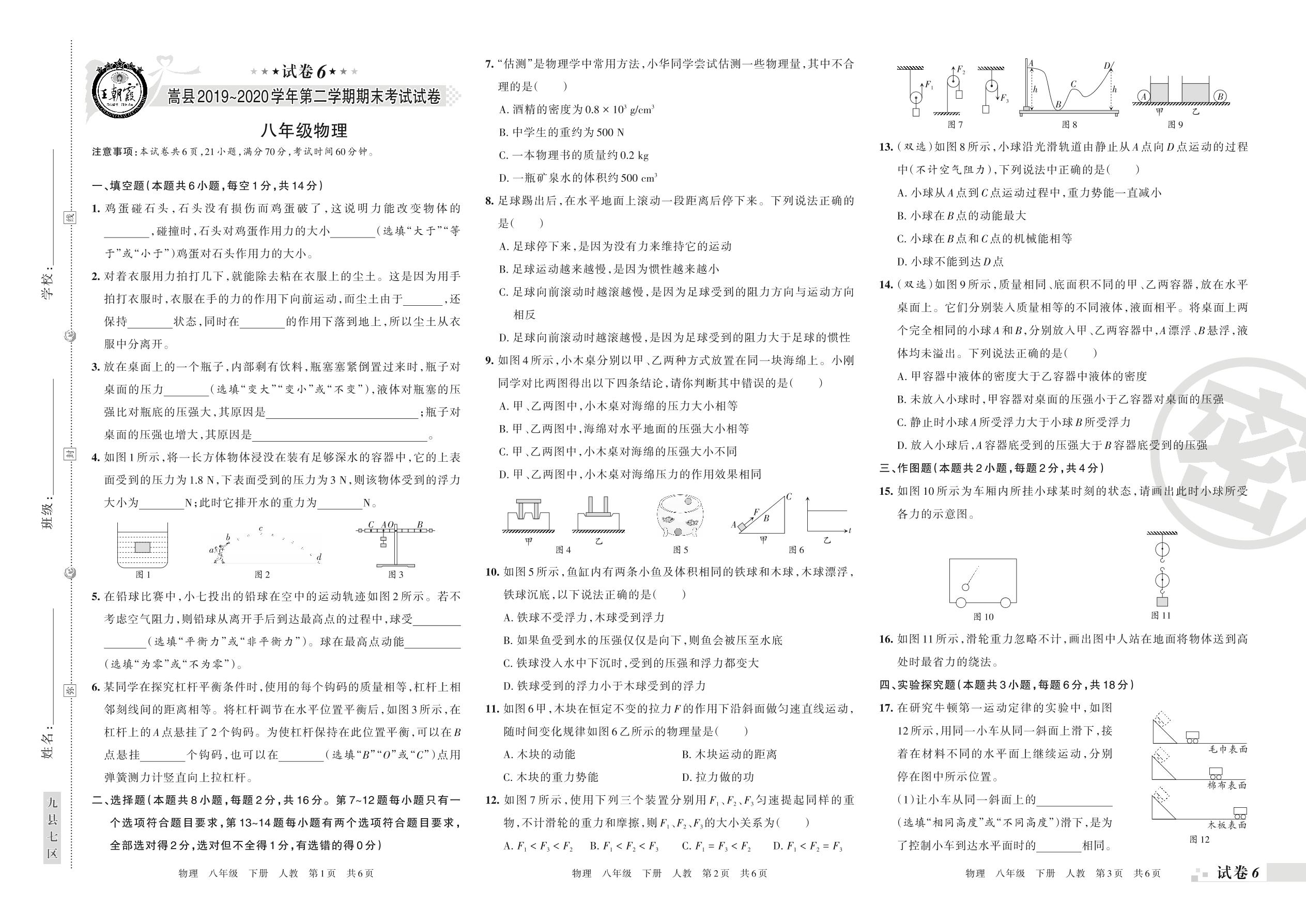 2019-2020学年第二学期洛阳市嵩县八年级物理试卷(人教版)【6】