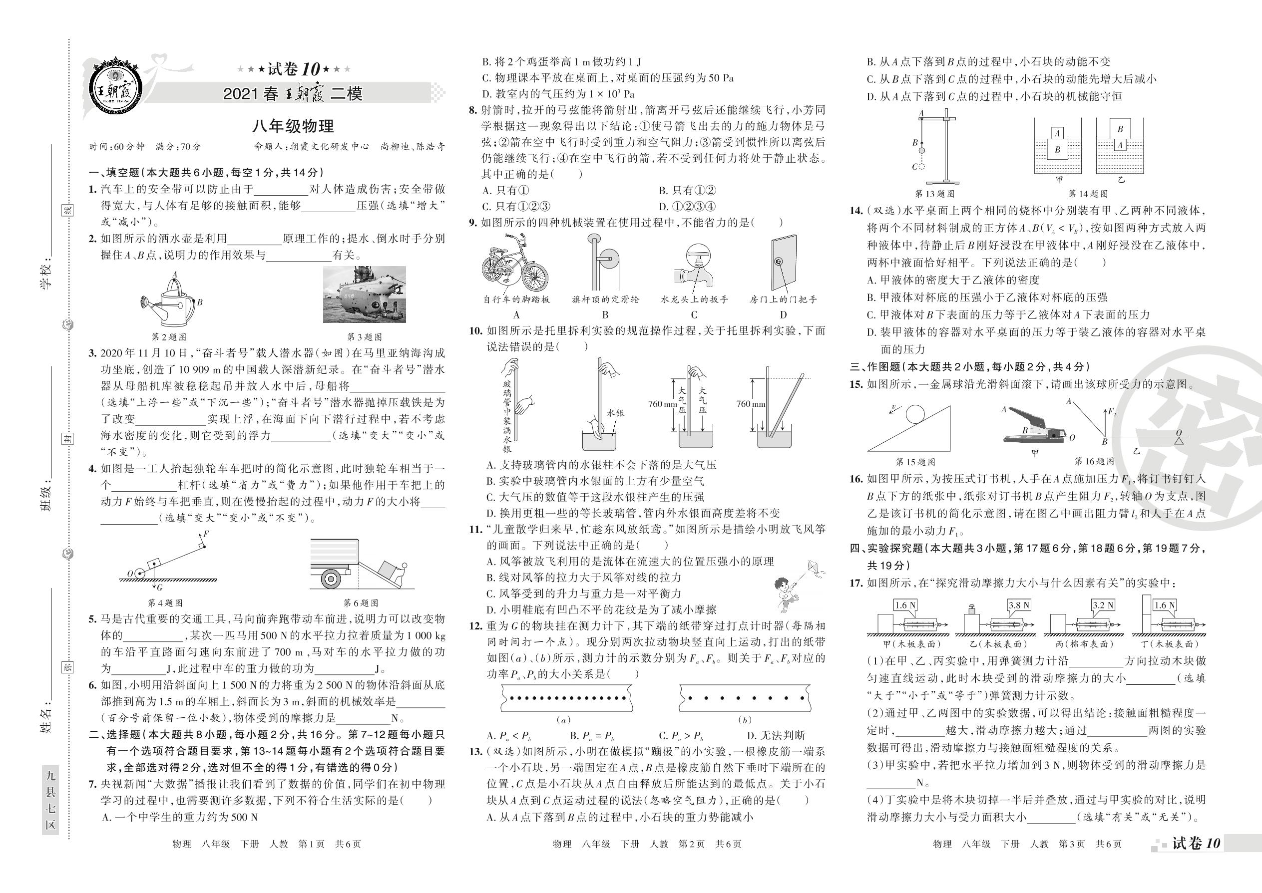 王朝霞期末模拟卷八年级下册物理(人教版)_R210810153711【10】