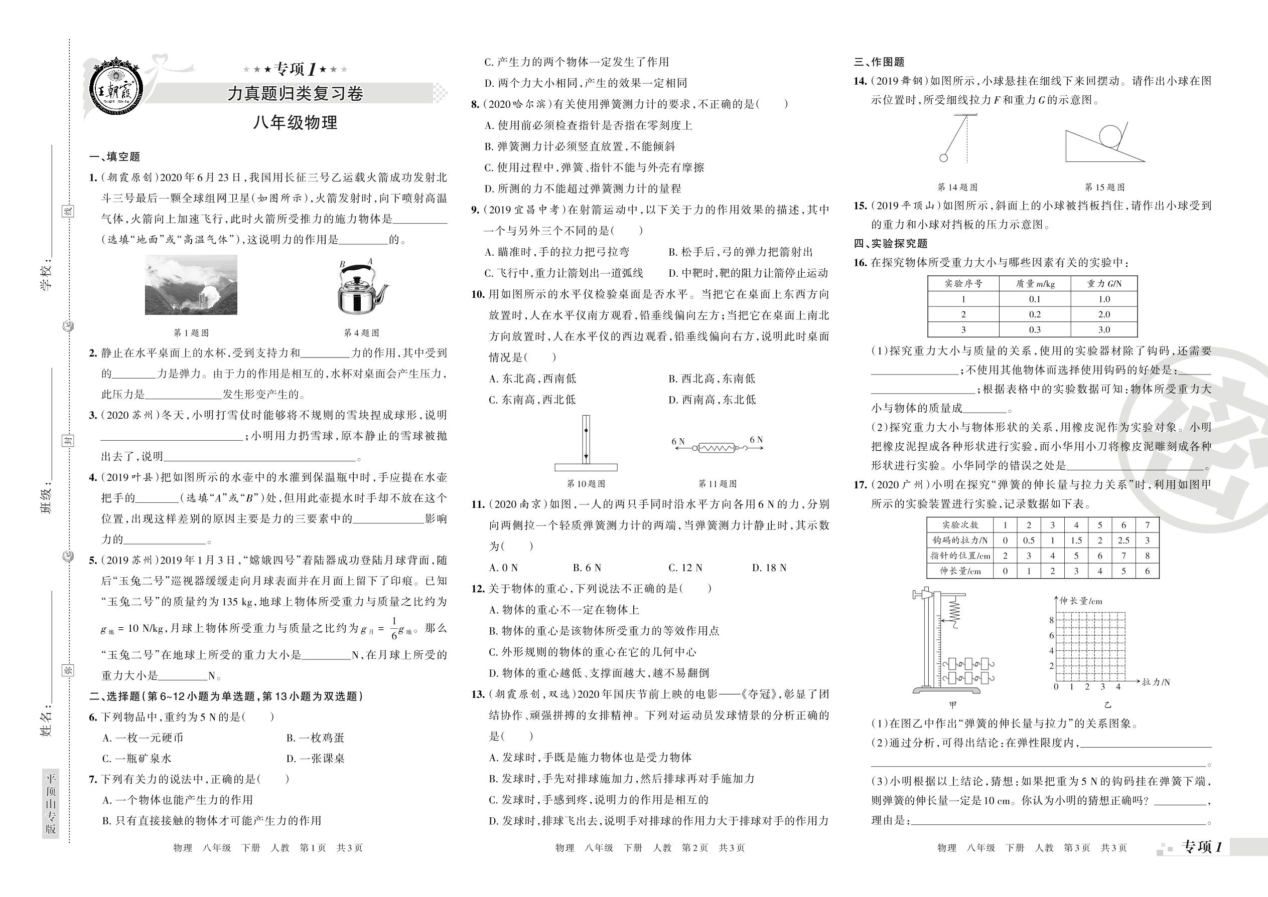 王朝霞期末专项卷——力、运动和力真题归类复习八年级下册物理(人教版)【0】
