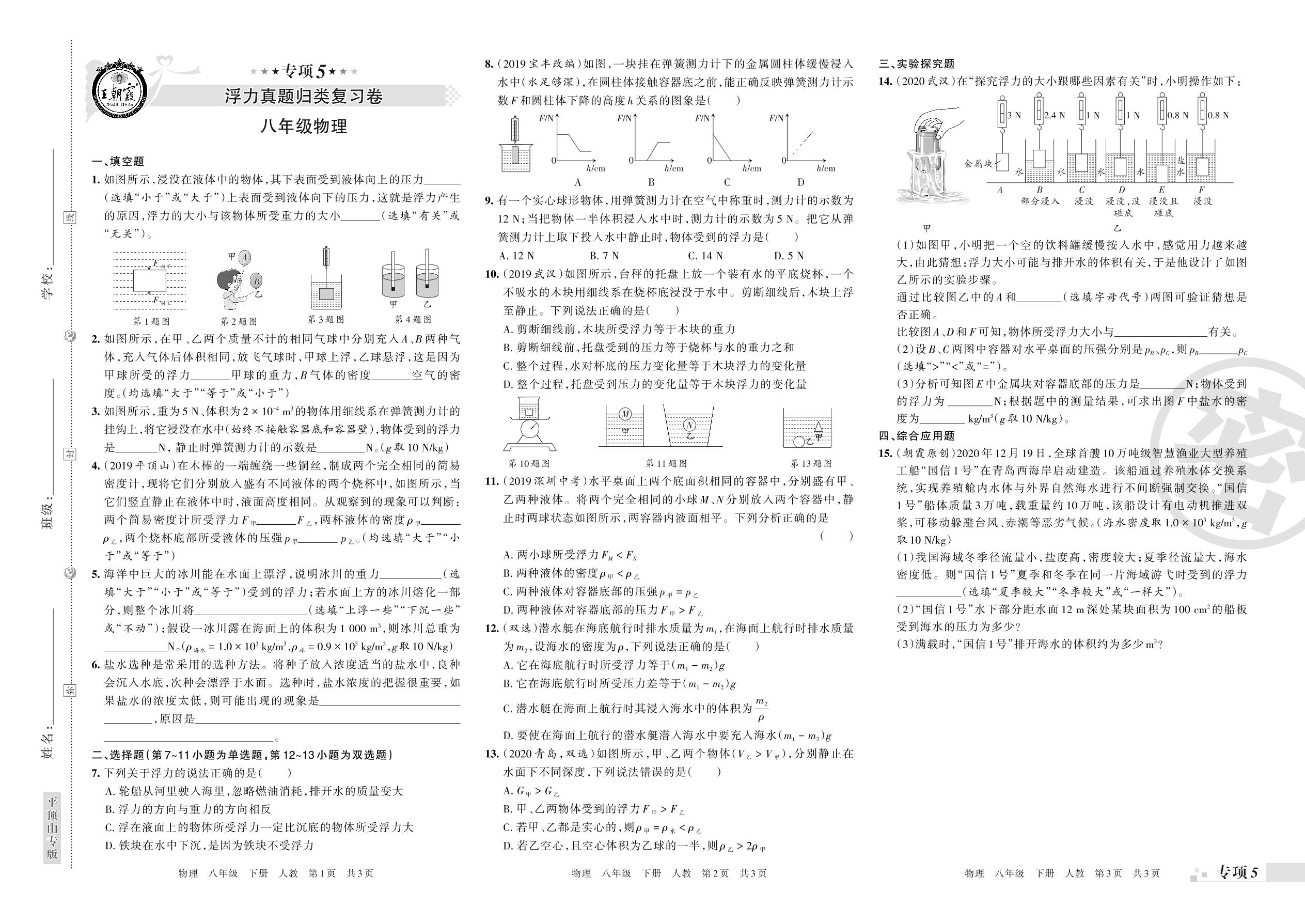 王朝霞期末专项卷——浮力、功和机械能真题归类复习八年级下册物理(人教版)【0】