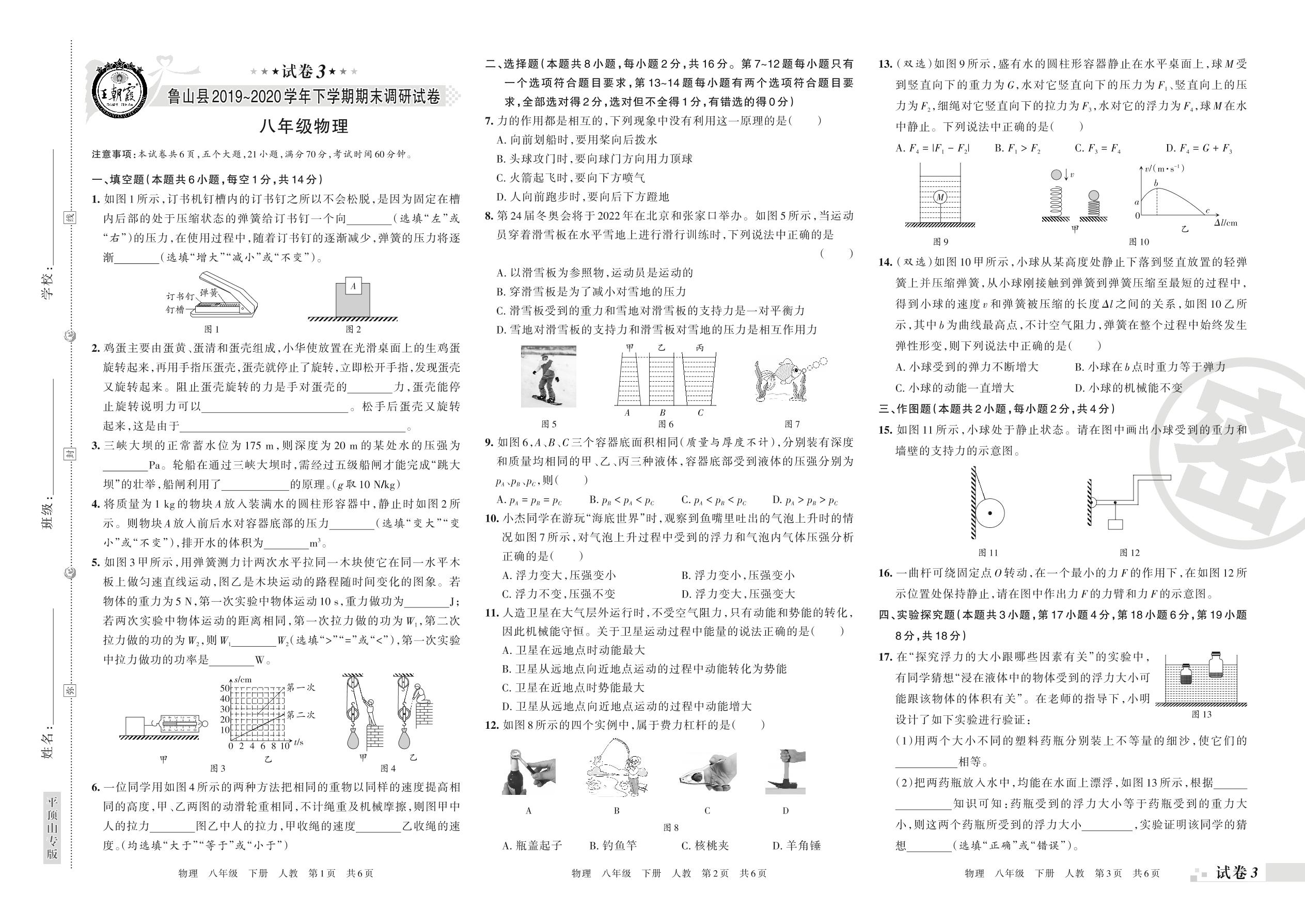 2019-2020学年第二学期平顶山市鲁山县八年级物理试卷(人教版)【3】