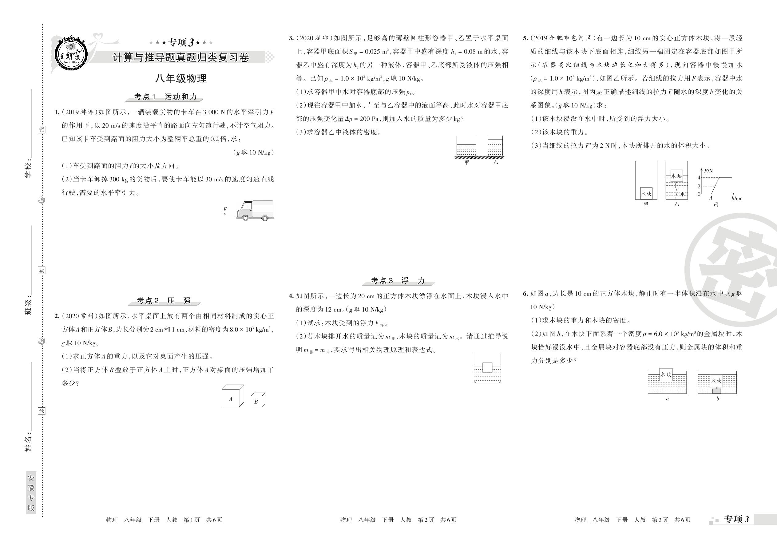 王朝霞期末专项卷——计算与推导题真题归类复习八年级下册物理(人教版)【0】