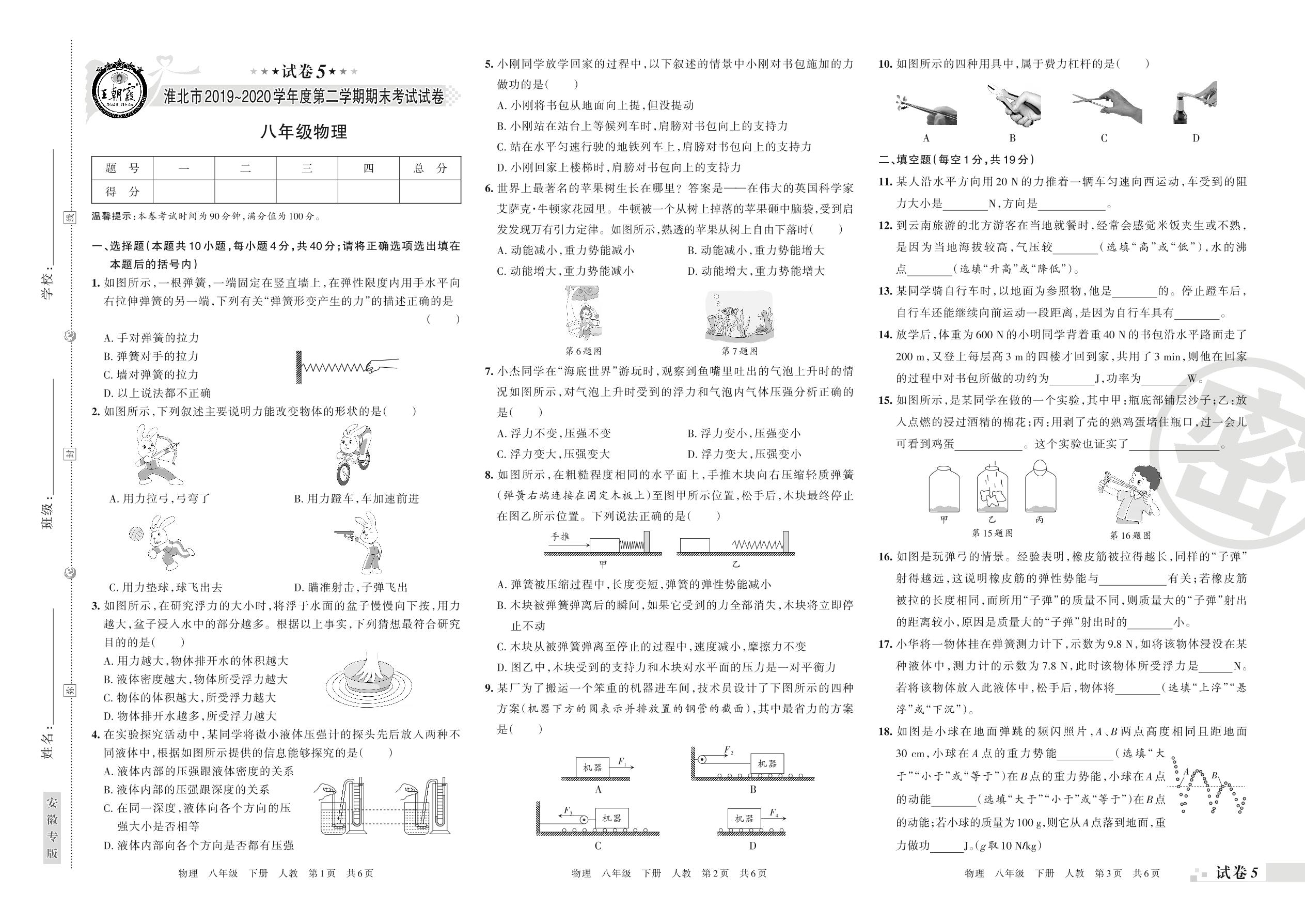 2019-2020学年第二学期淮北市八年级物理试卷(人教版)【5】