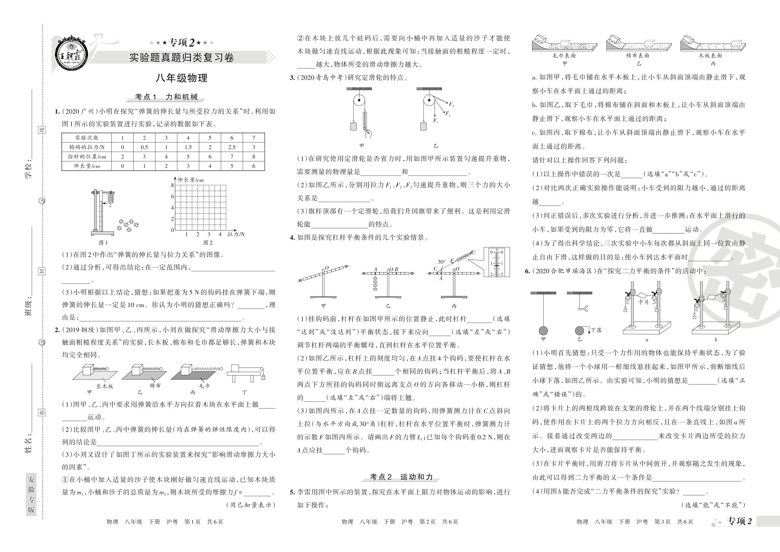 王朝霞期末专项卷——实验题真题归类复习八年级下册物理(沪粤版)【0】