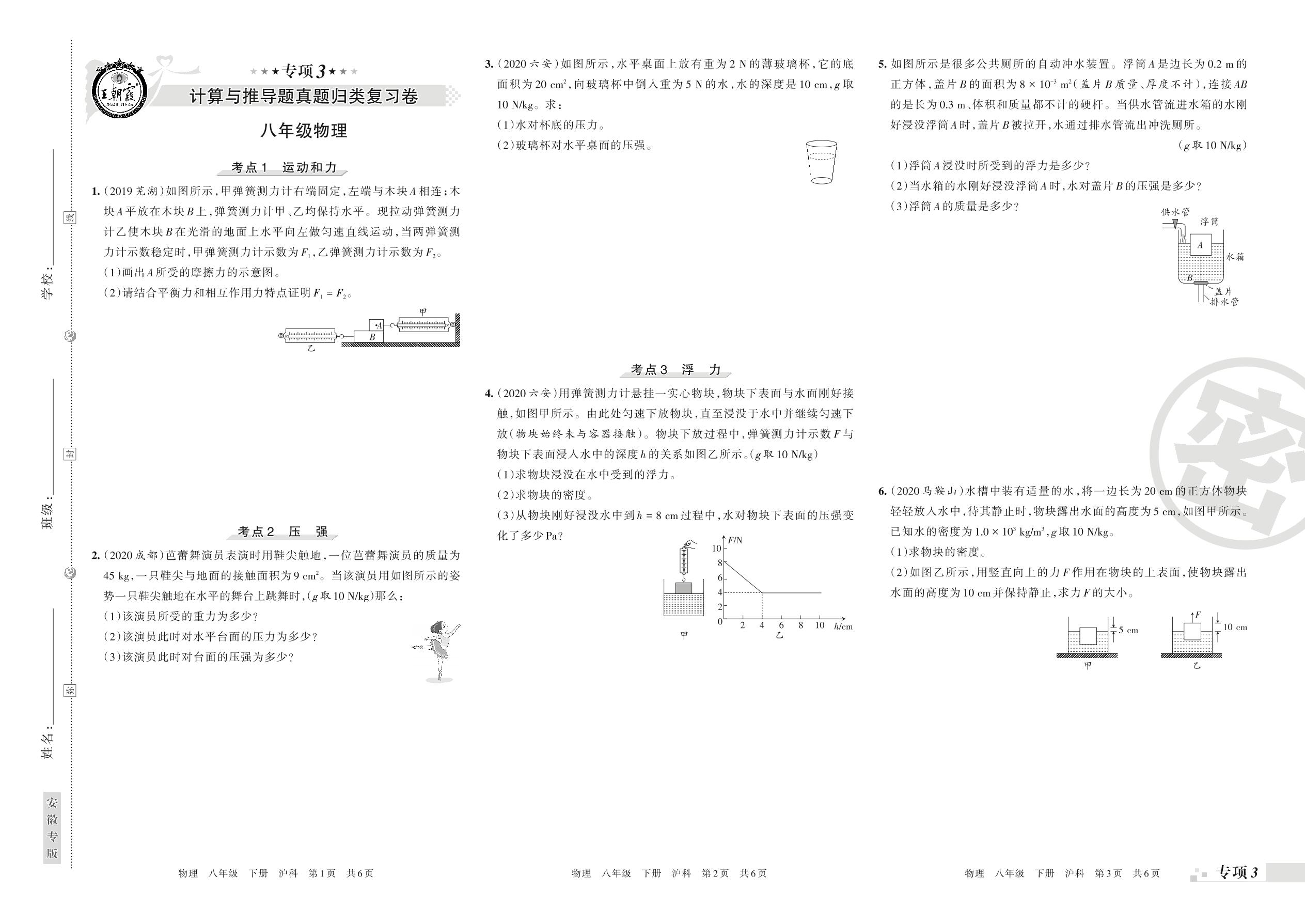 王朝霞期末专项卷——计算与推导题真题归类复习八年级下册物理(沪科版)【0】