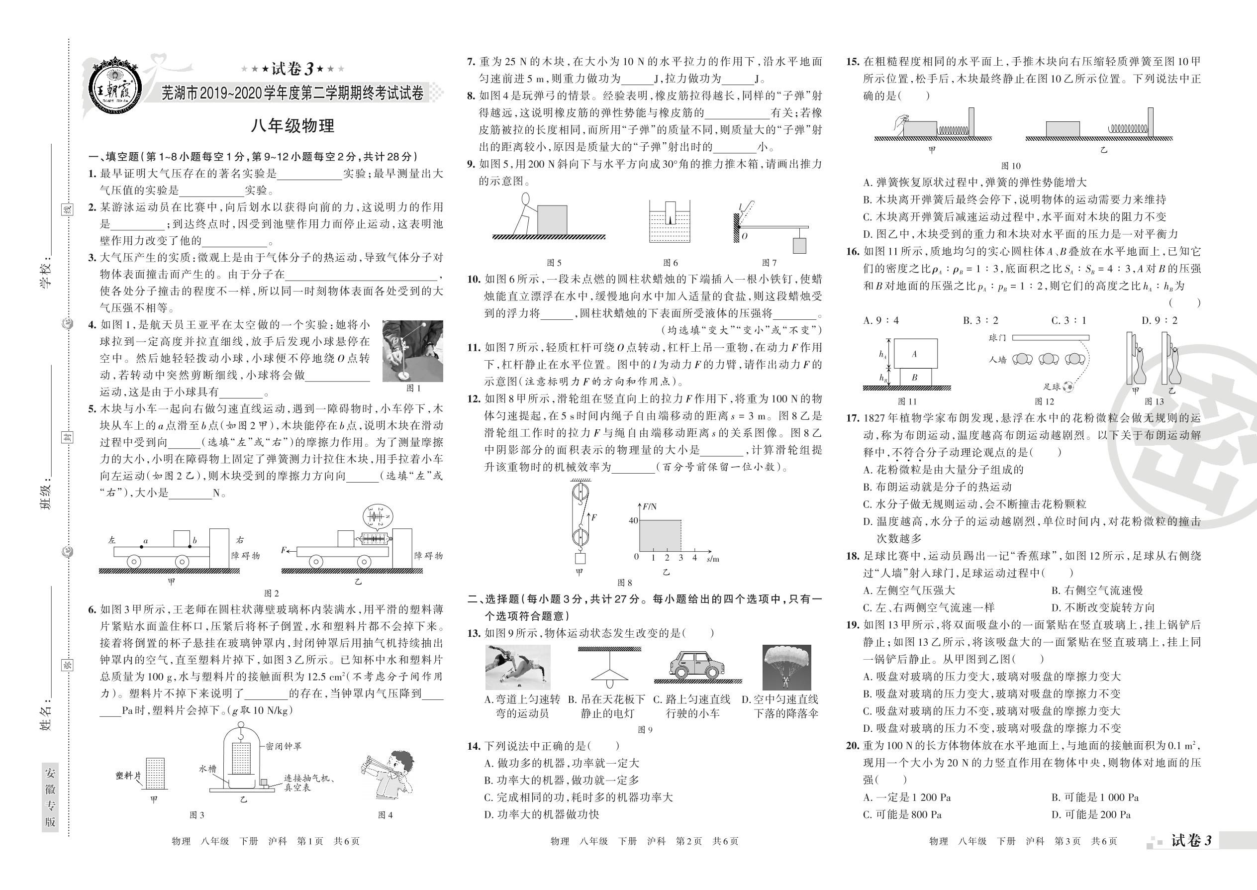 2019-2020学年第二学期芜湖市八年级物理试卷(沪科版)【3】