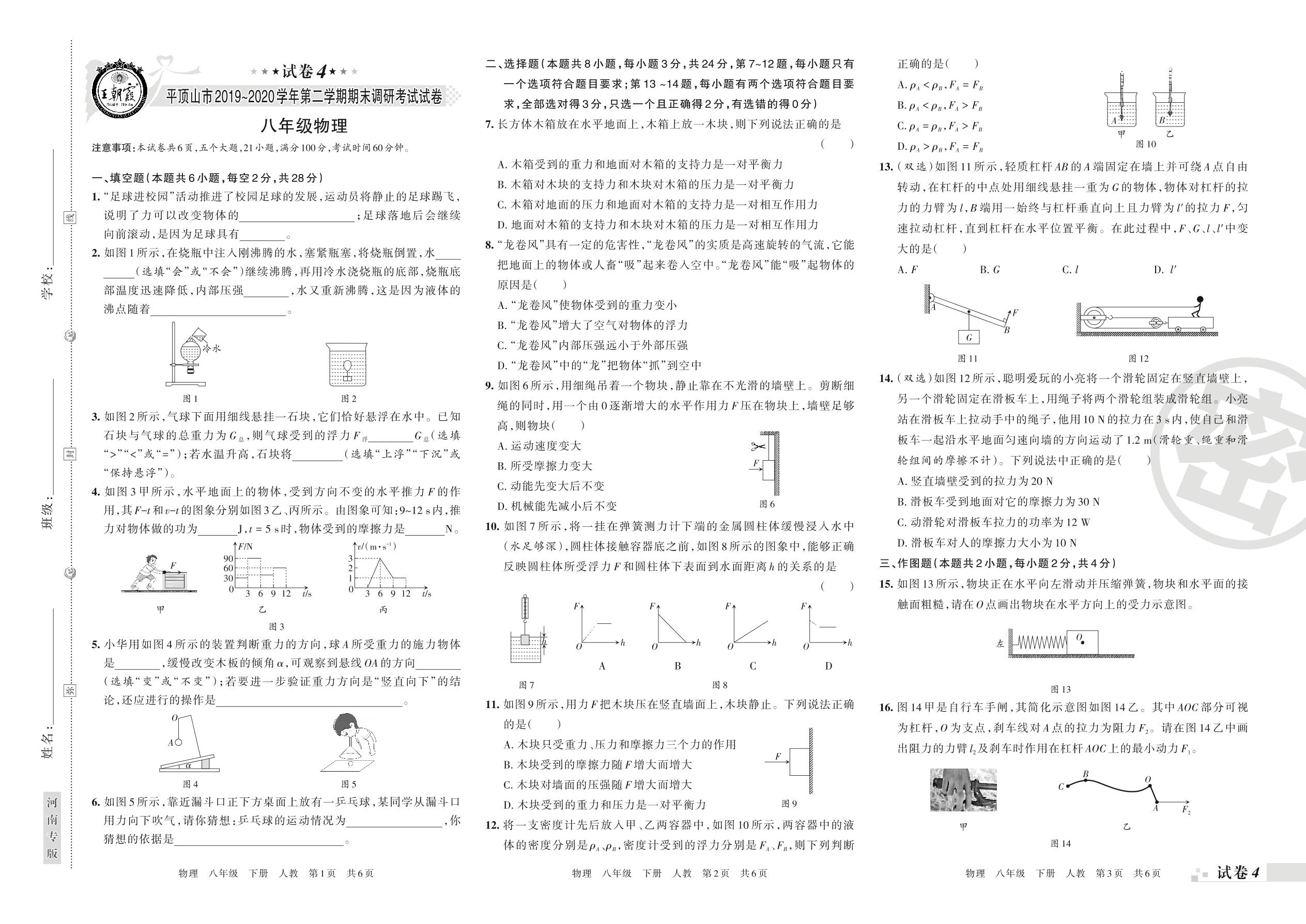 2019-2020学年第二学期平顶山市八年级物理试卷(人教版)【4】