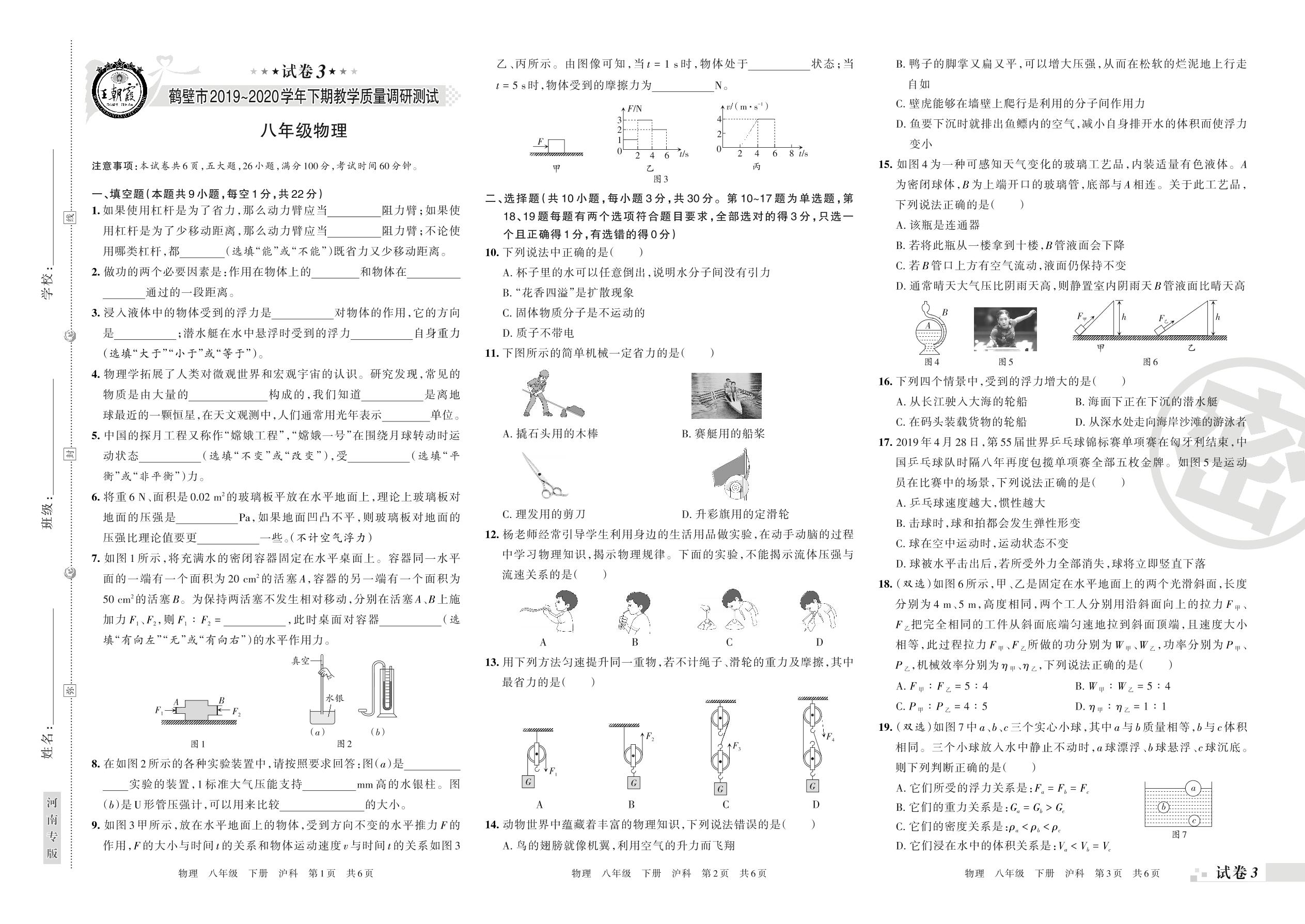 2019-2020学年第二学期鹤壁市八年级物理试卷(沪科版)【3】