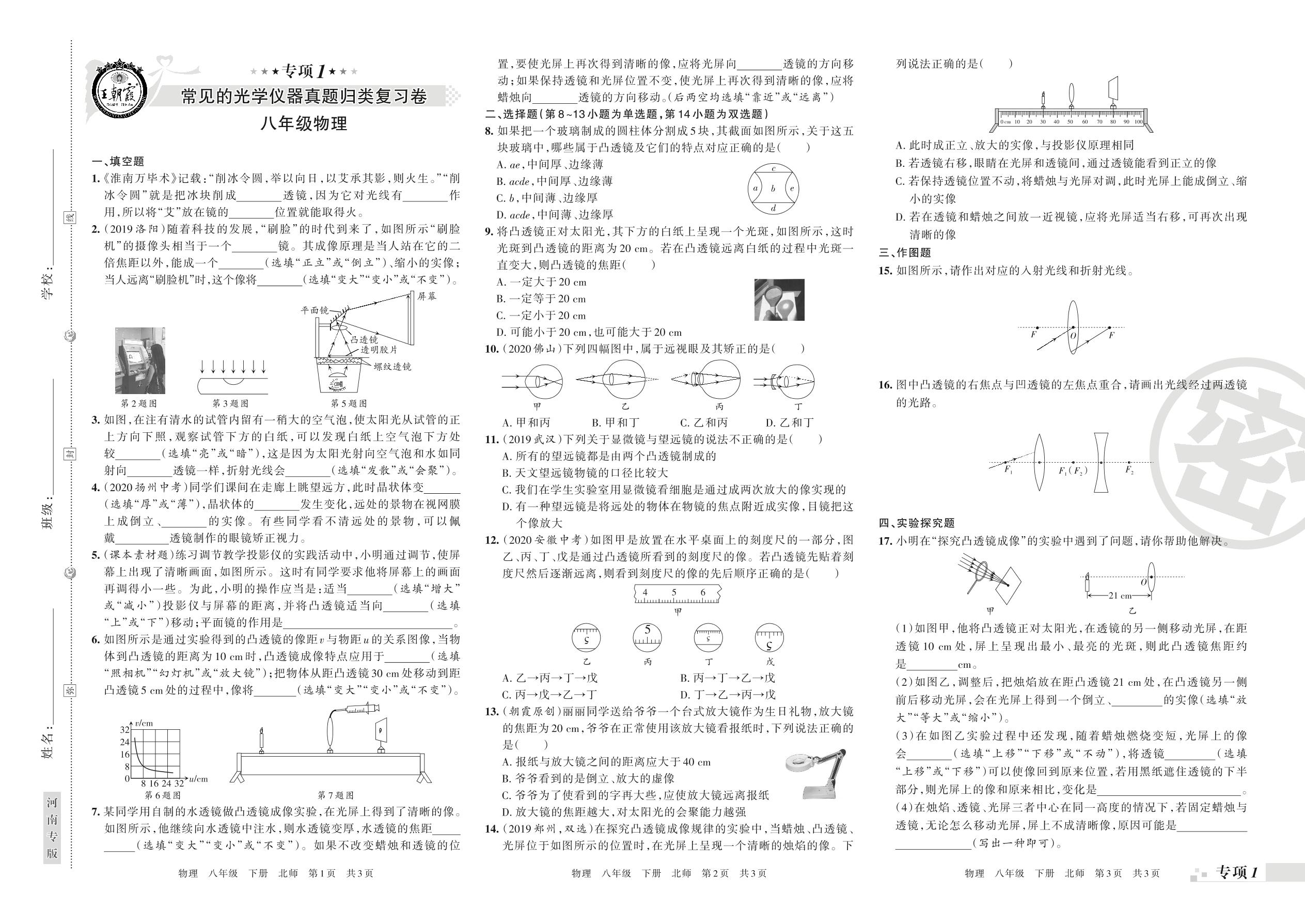 王朝霞期末专项卷——常见的光学仪器、力真题归类复习八年级下册物理(北师版)【0】