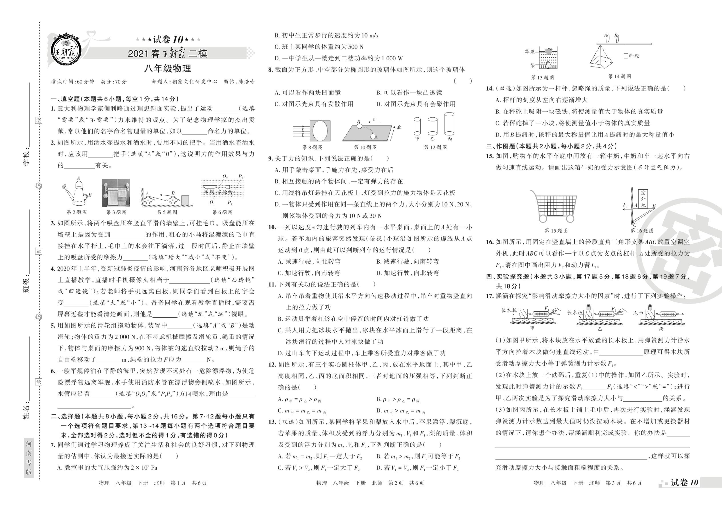 王朝霞期末模拟卷八年级下册物理(北师版)_R210810155821【10】