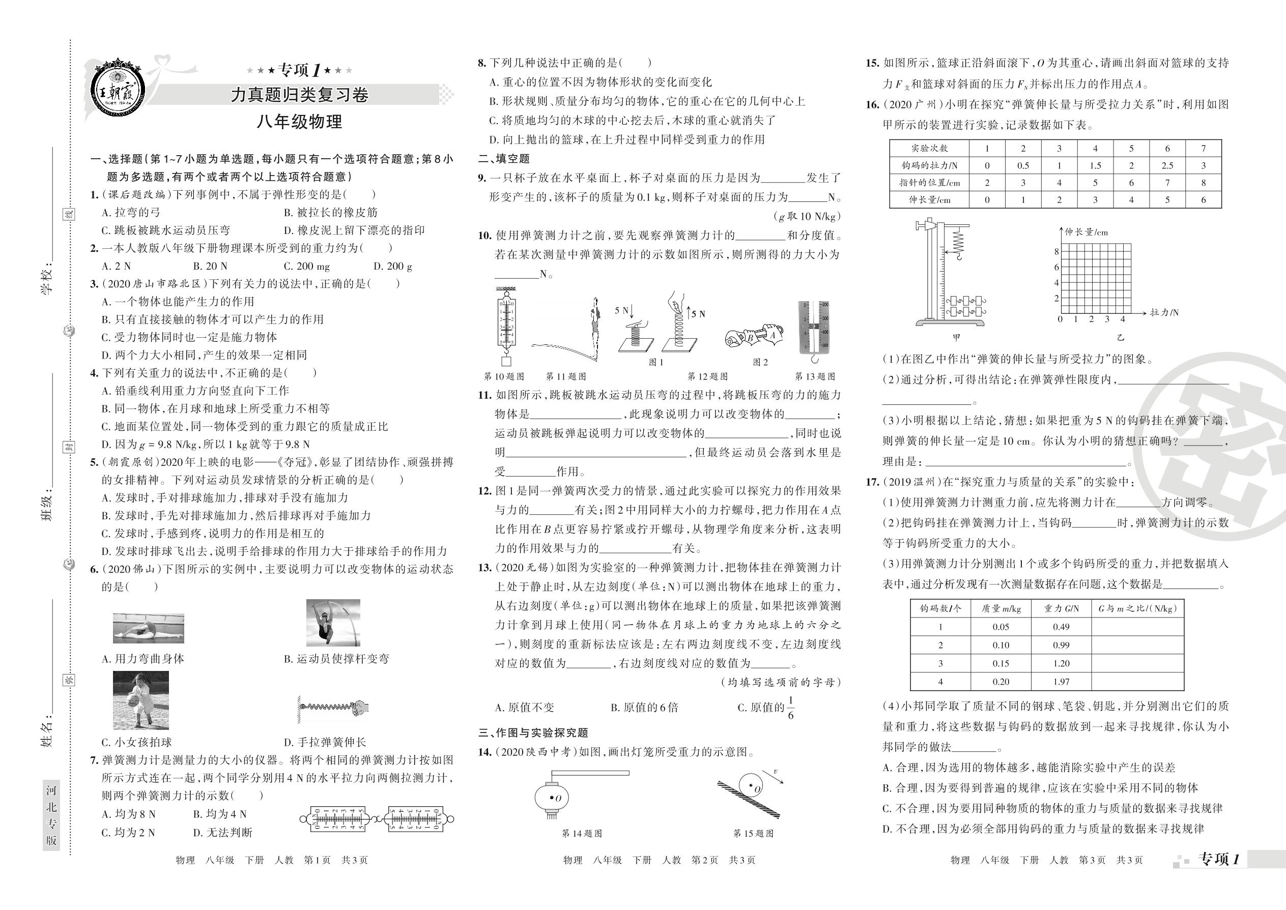 王朝霞期末专项卷——力、运动和力真题归类复习八年级下册物理(人教版)_R210810155838【0】