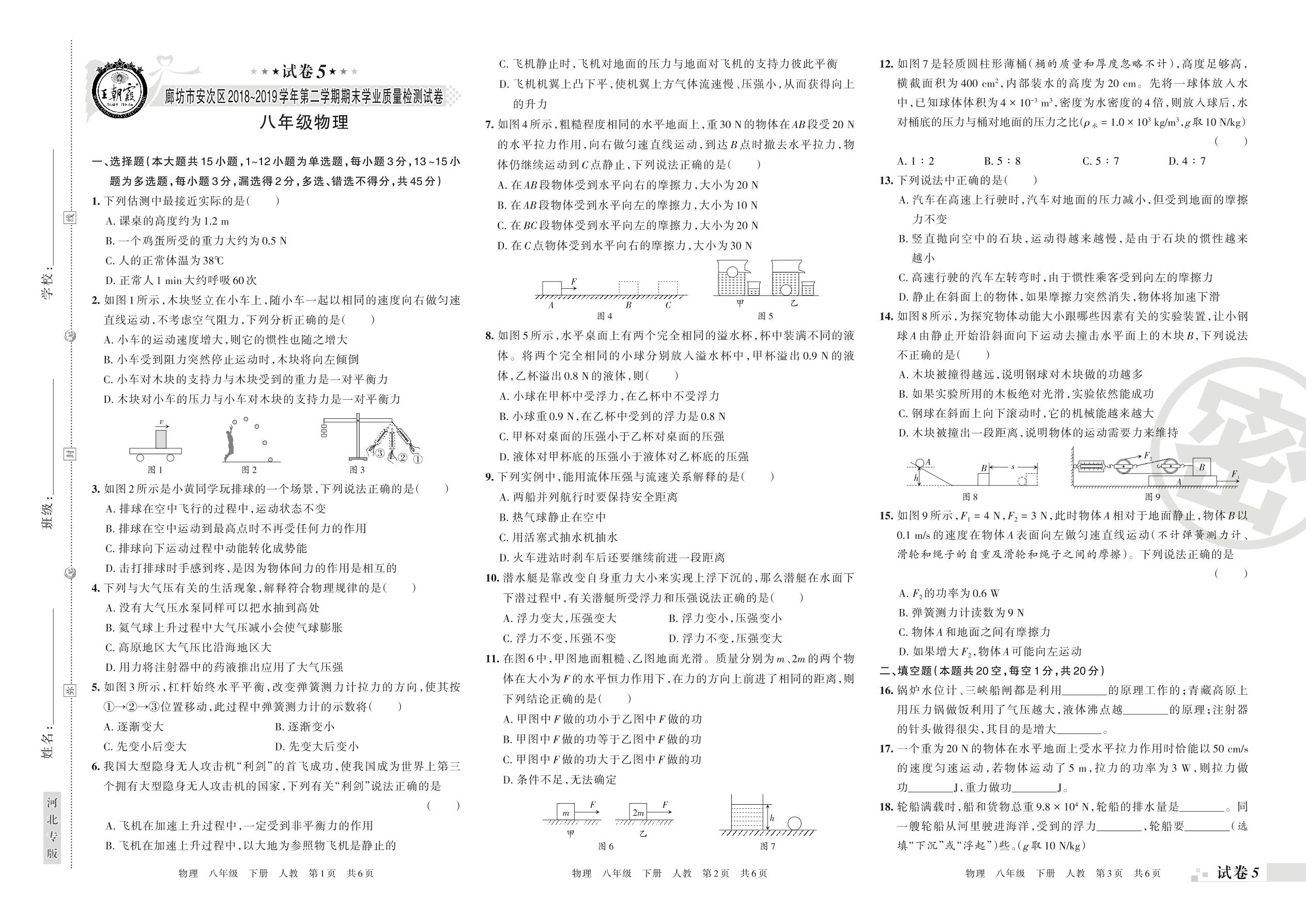 2018-2019学年第二学期廊坊市安次区八年级物理试卷(人教版)【5】