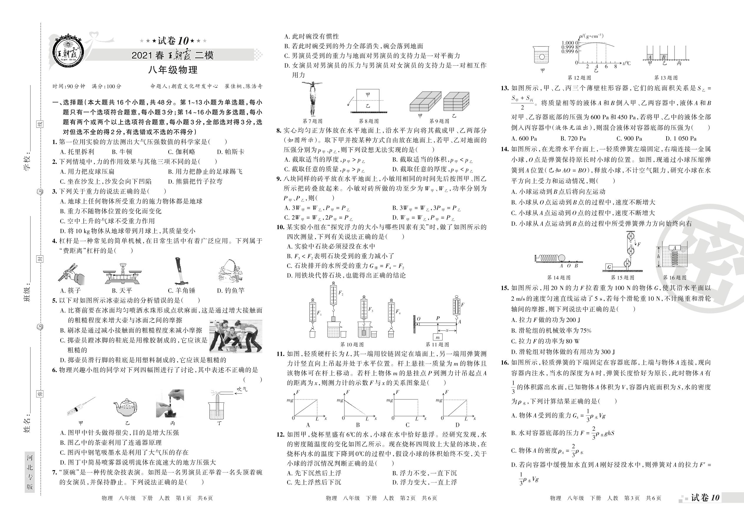王朝霞期末模拟卷八年级下册物理(人教版)_R210810160029【10】