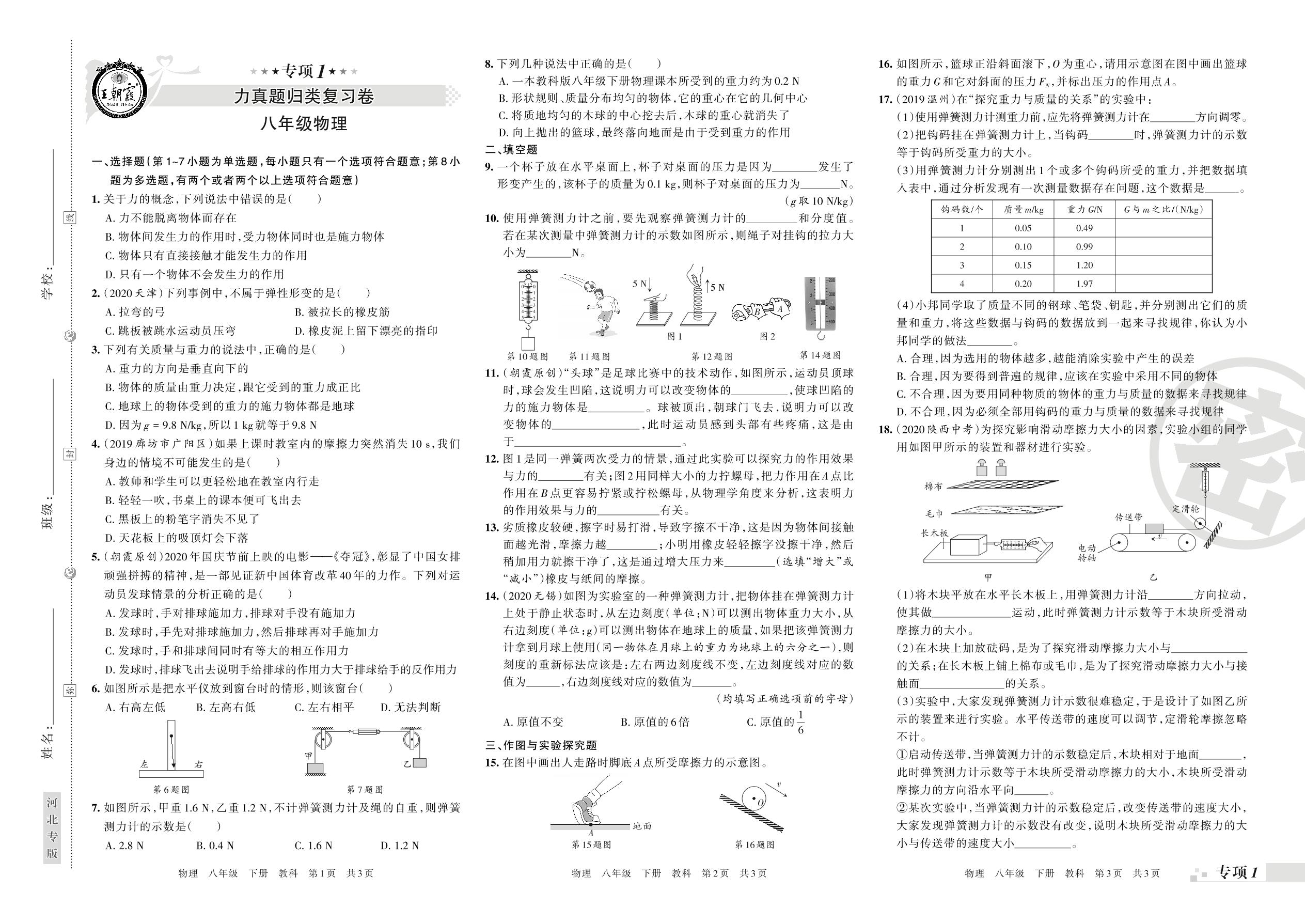 王朝霞期末专项卷——力、力与运动真题归类复习八年级下册物理(教科版)【0】