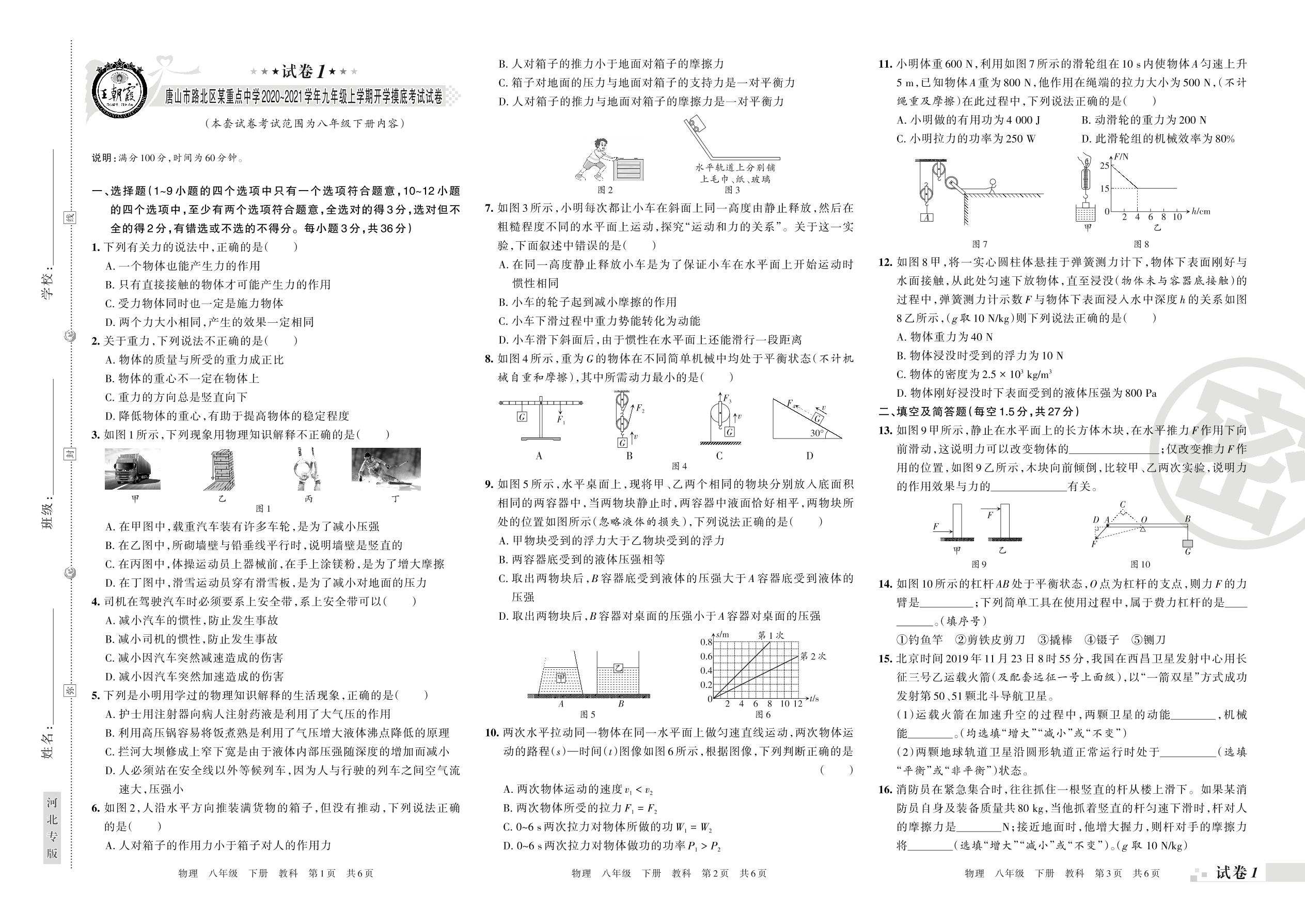2020-2021学年第二学期唐山市路北区八年级物理试卷(教科版)【1】
