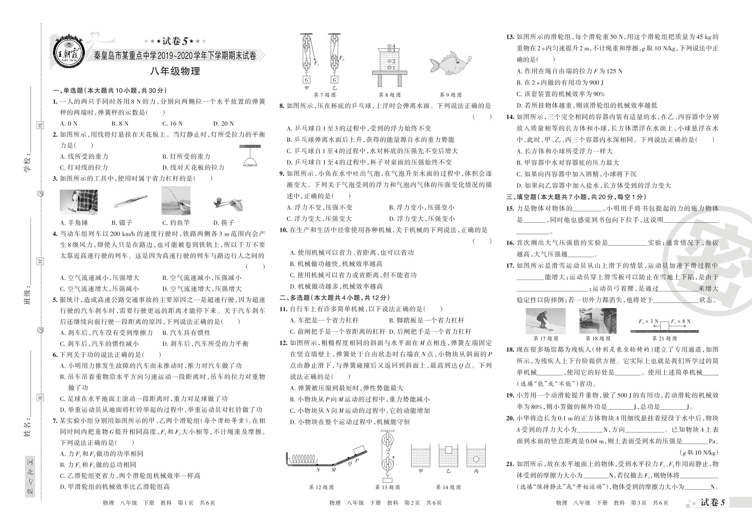 2019-2020学年第二学期秦皇岛市八年级物理试卷(教科版)【5】