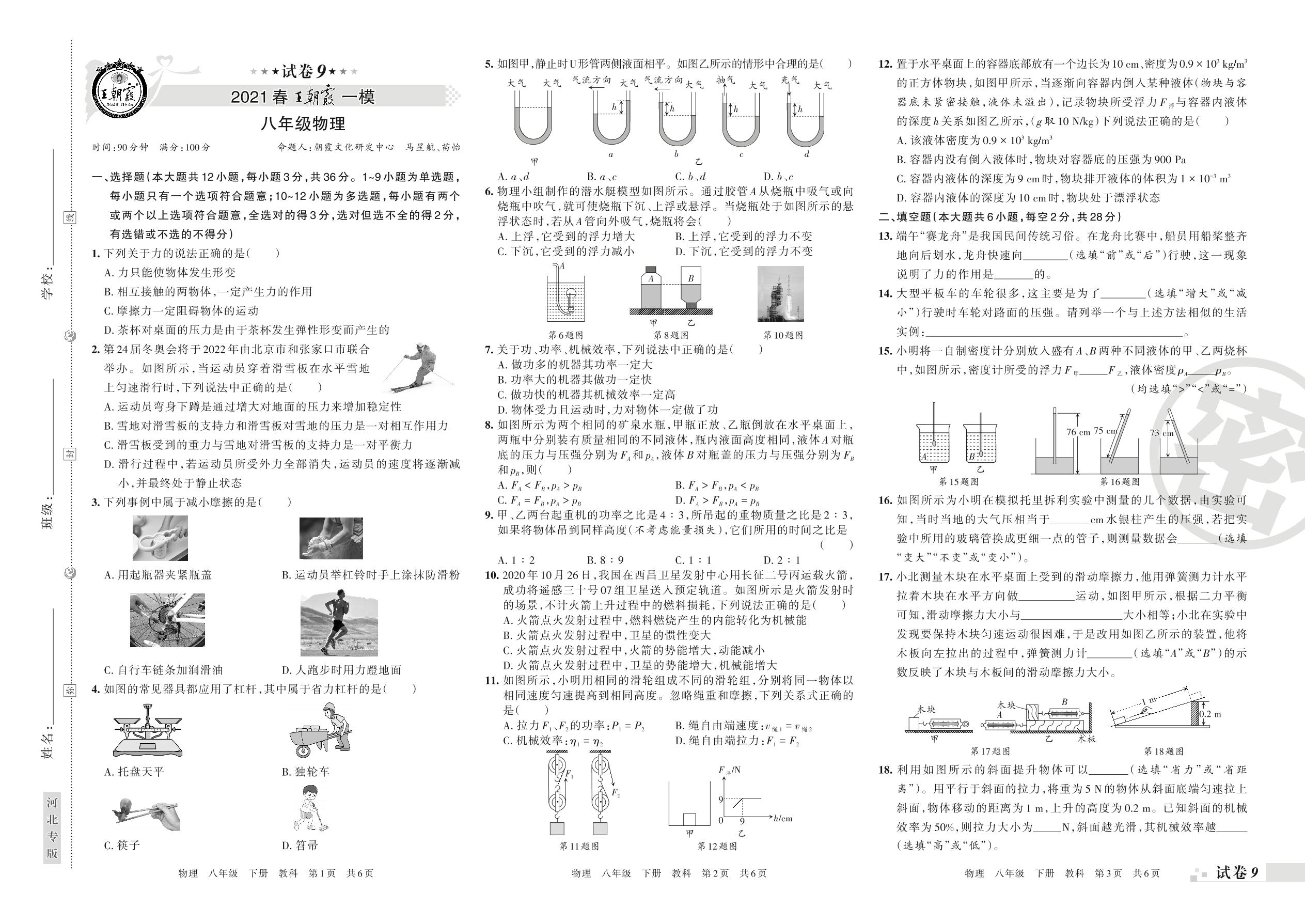 王朝霞期末模拟卷八年级下册物理(教科版)_R210810160324【9】