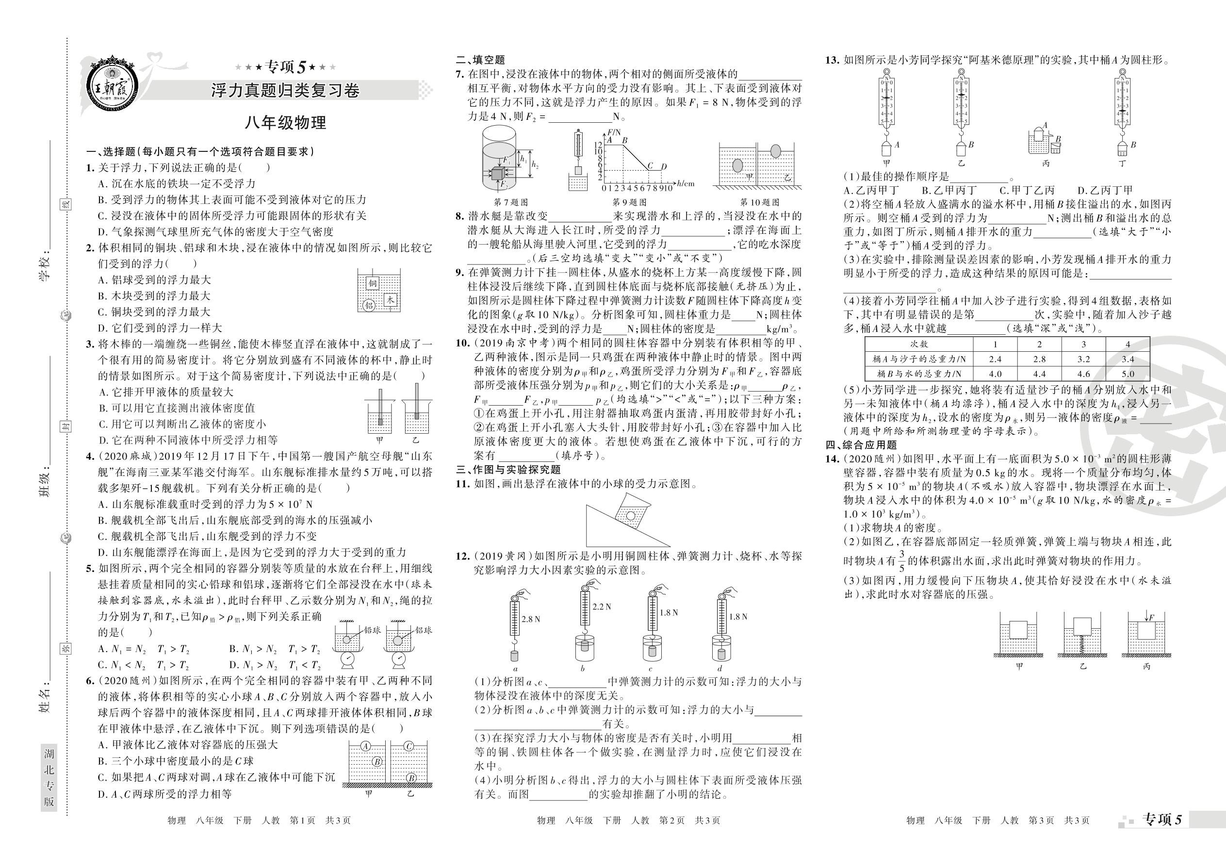 王朝霞期末专项卷——浮力、功和机械能真题归类复习八年级下册物理(人教版)_R210810160427【0】