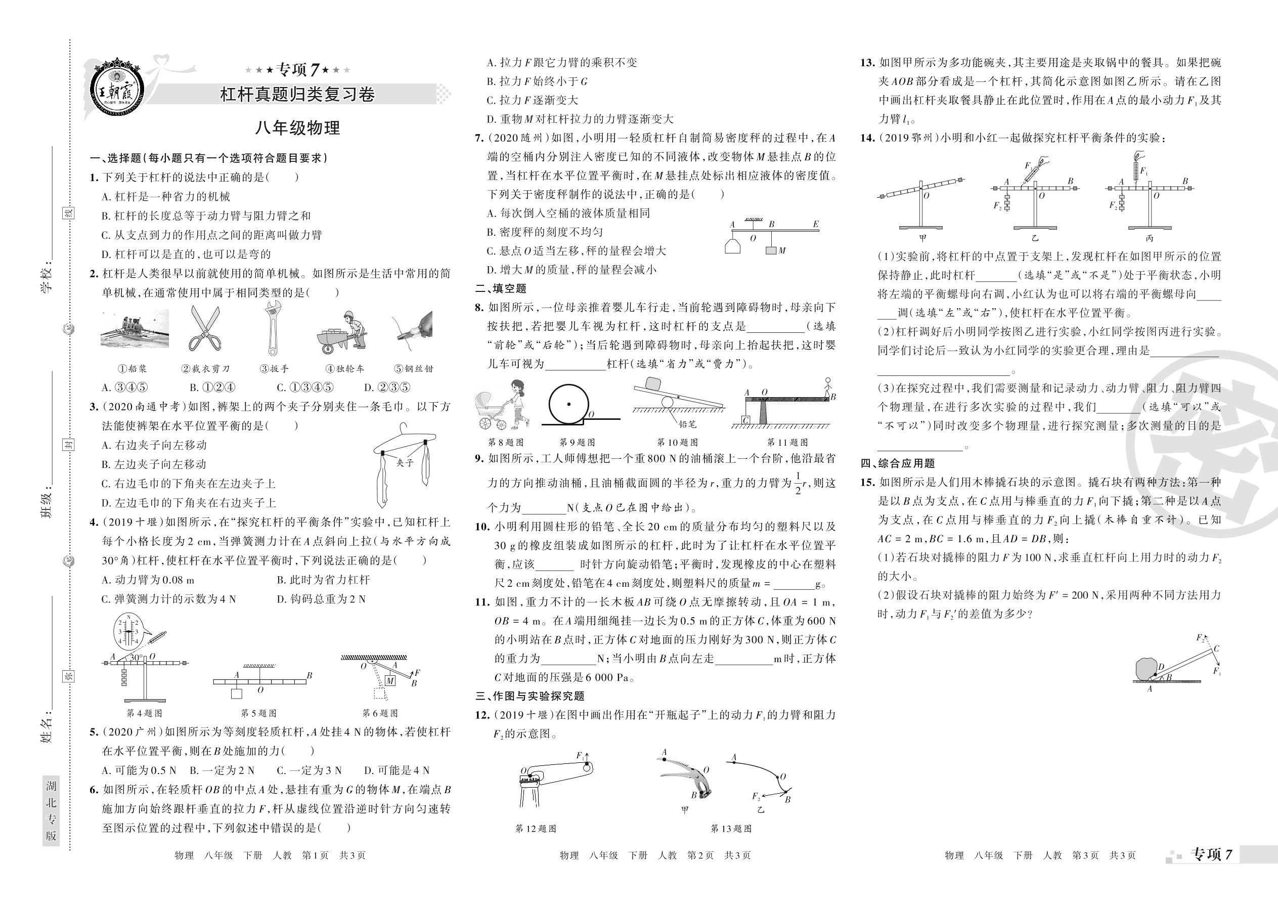 王朝霞期末专项卷——杠杆、滑轮及机械效率真题归类复习八年级下册物理(人教版)_R210810160435【0】