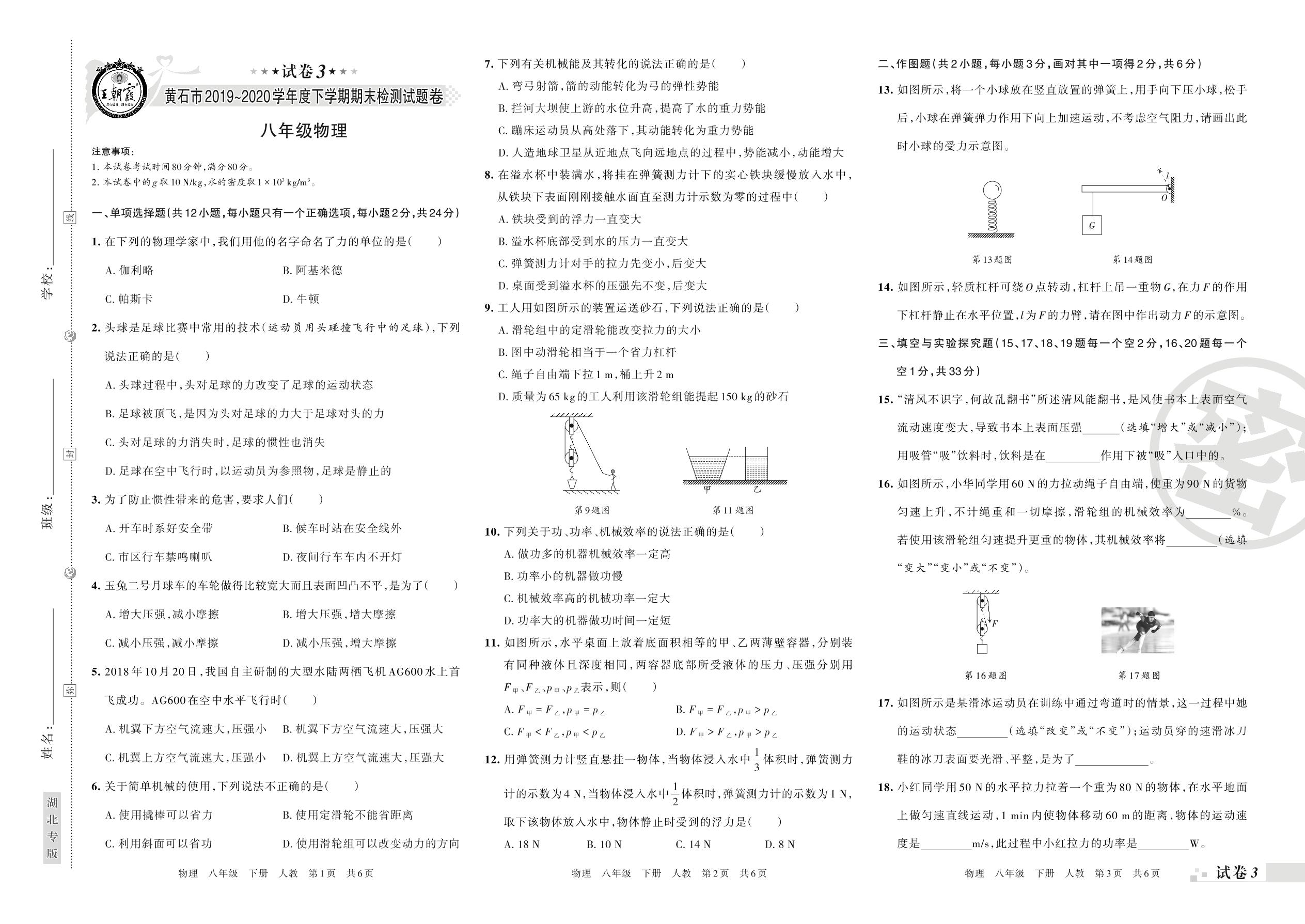 八年级物理人教版下册期末卷