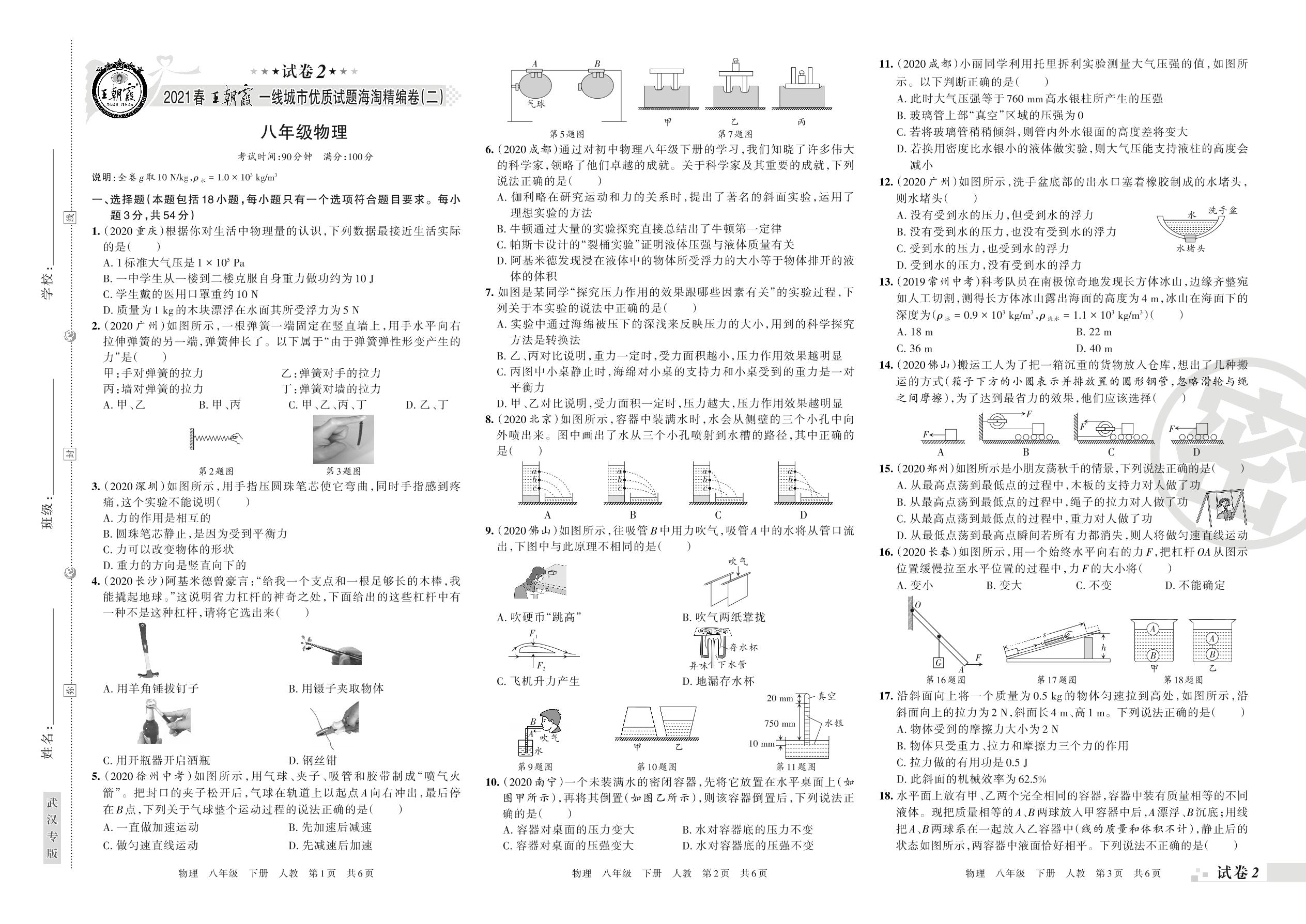 八年级物理人教版下册期末卷