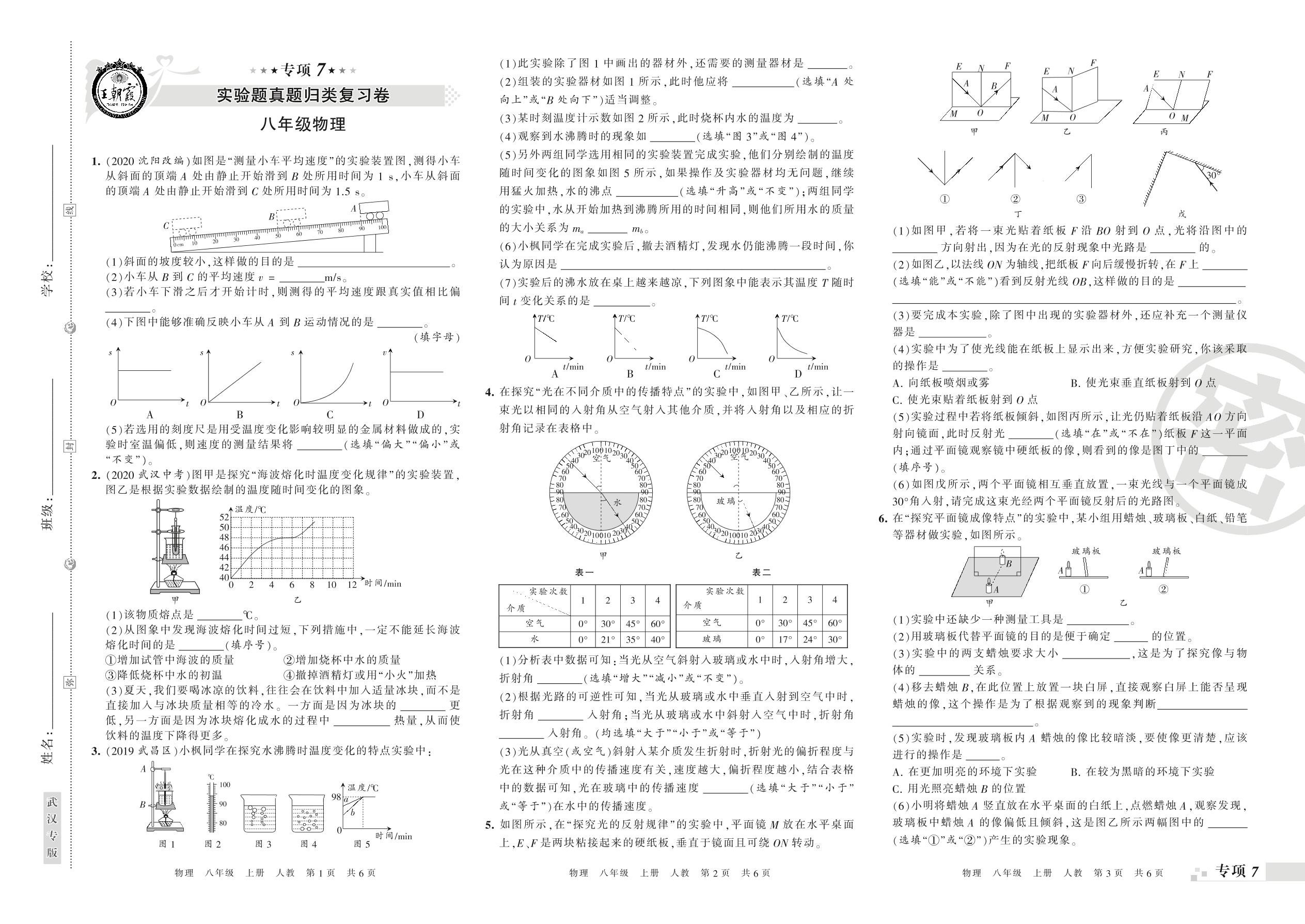 王朝霞期末专项卷——实验题真题归类复习八年级上册物理(人教版)【0】