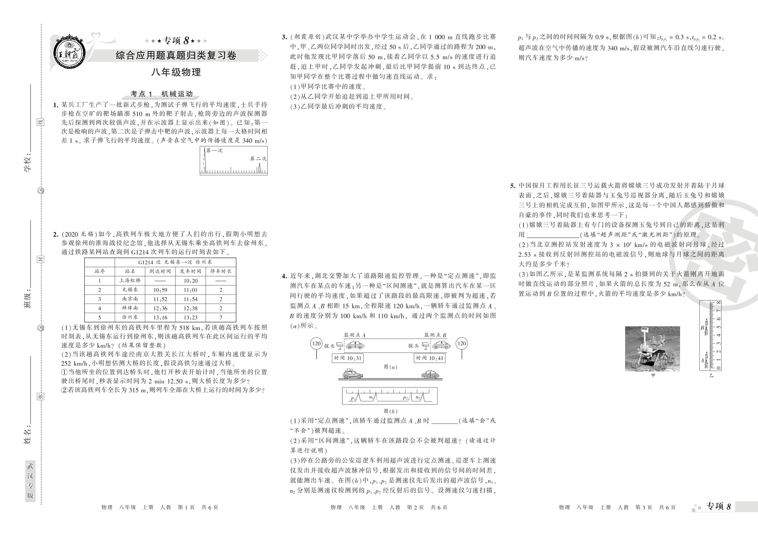 王朝霞期末专项卷——综合应用题真题归类复习八年级上册物理(人教版)【0】