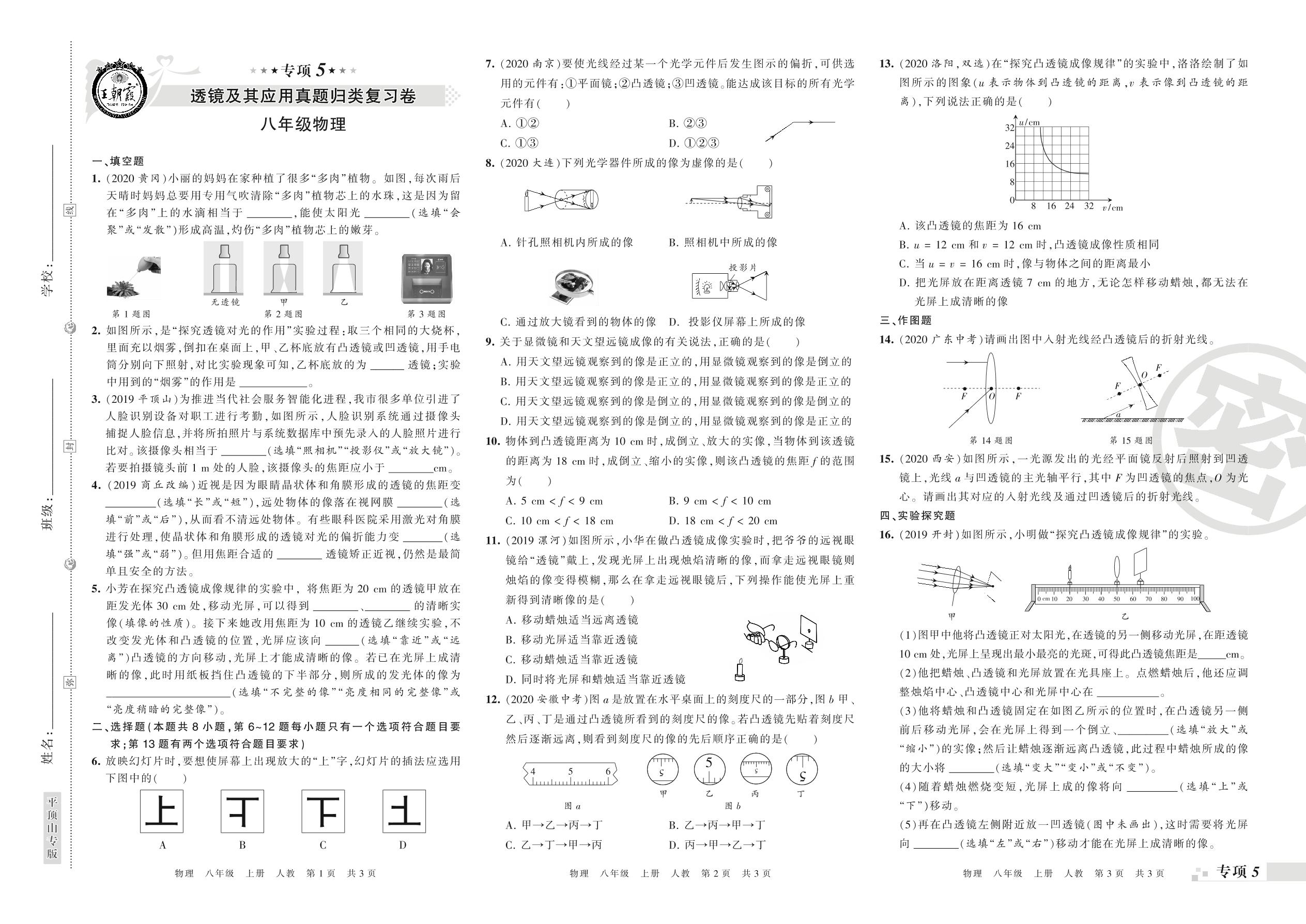 王朝霞期末专项卷——透镜及其应用、质量与密度真题归类复习八年级上册物理(人教版)