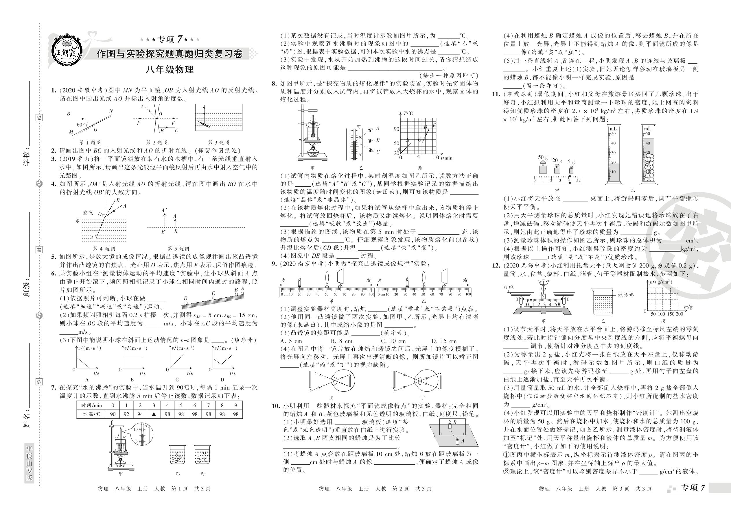 王朝霞期末专项卷——作图与实验探究题、综合应用题真题归类复习八年级上册物理(人教版)