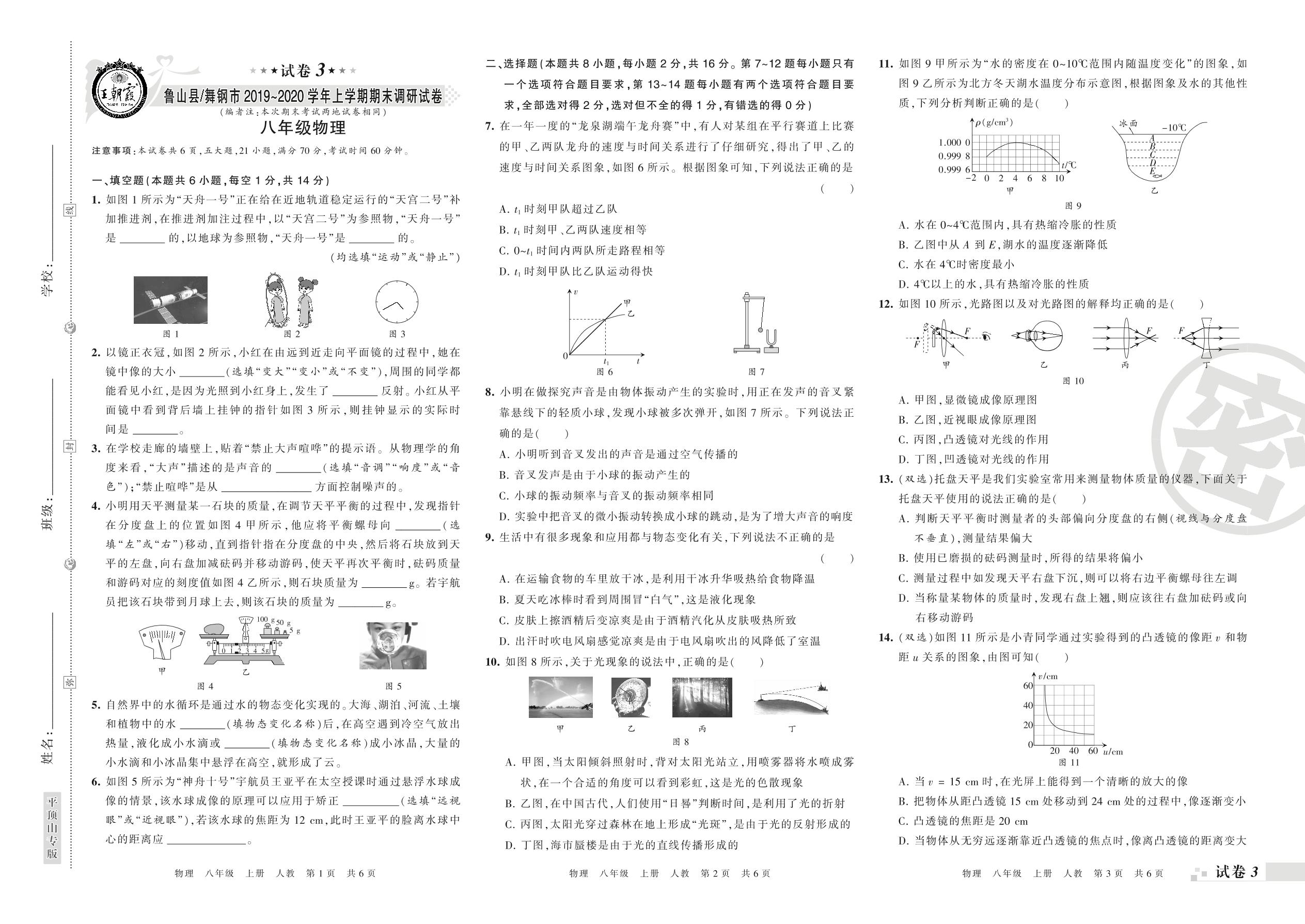 2019-2020学年第一学期鲁山县、舞钢市八年级物理试卷(人教版)【3】