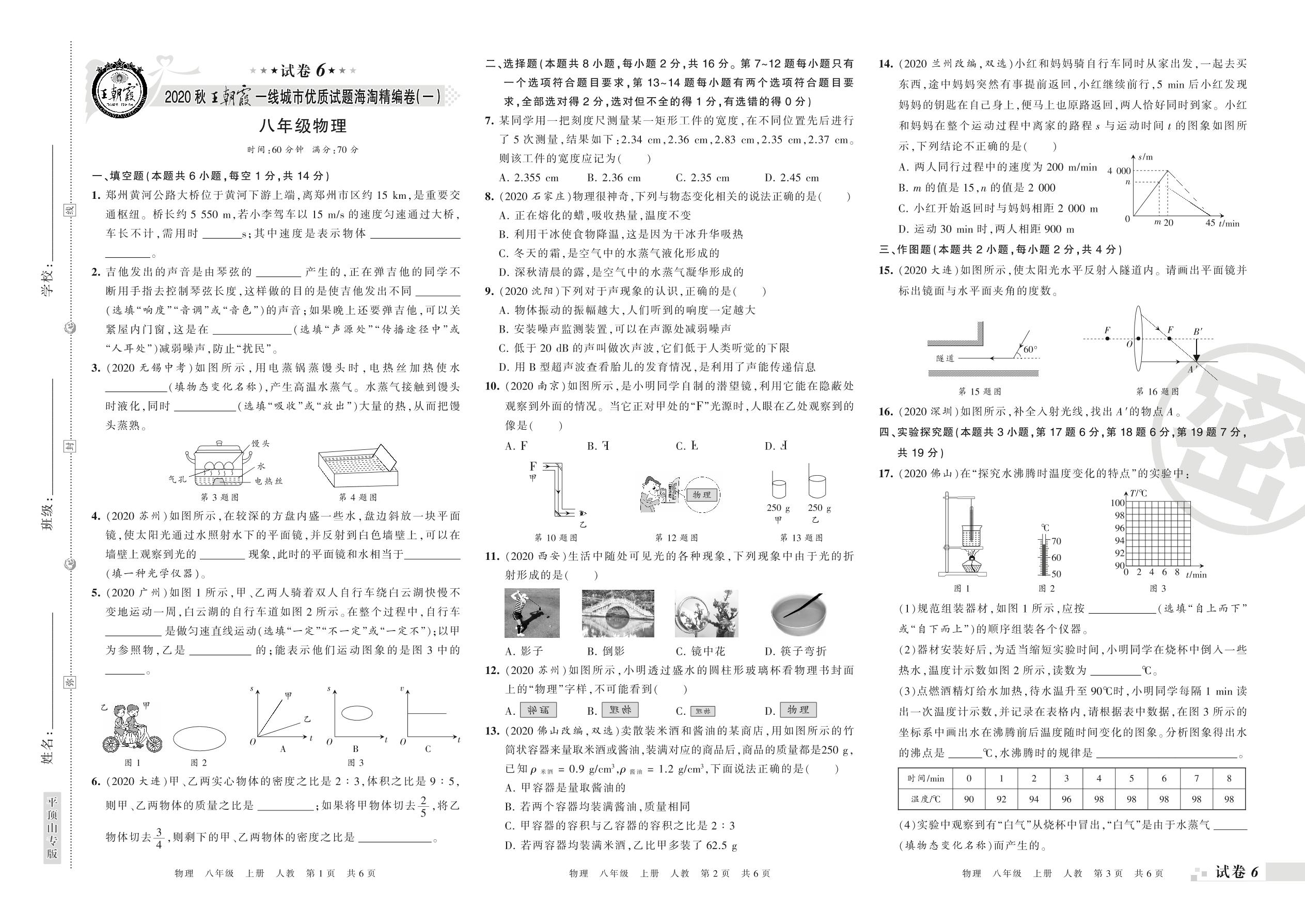 王朝霞海淘期末精编卷八年级上册物理(人教版)