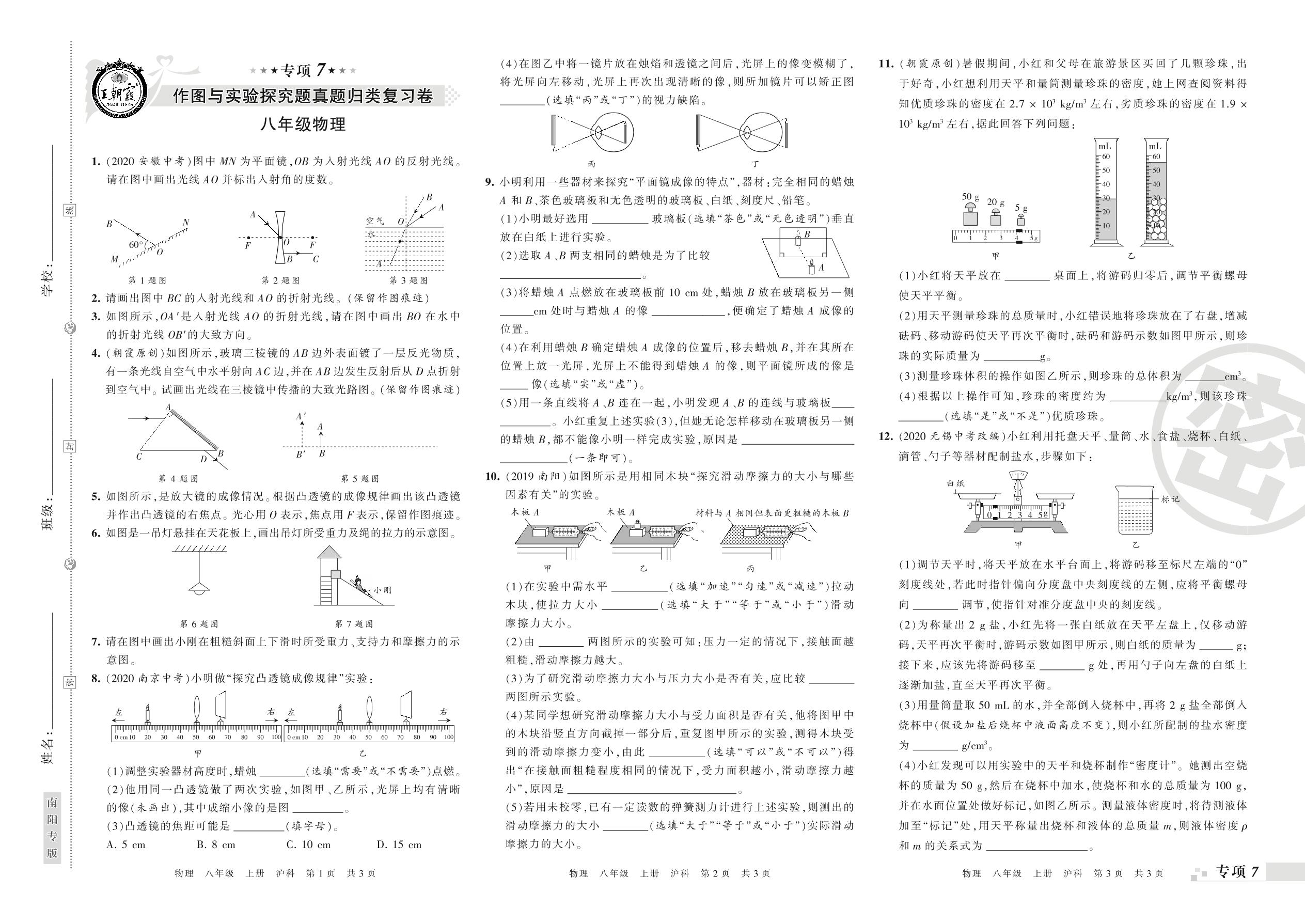 王朝霞期末专项卷——作图与实验探究题、综合应用题真题归类复习卷八年级上册物理(沪科版)