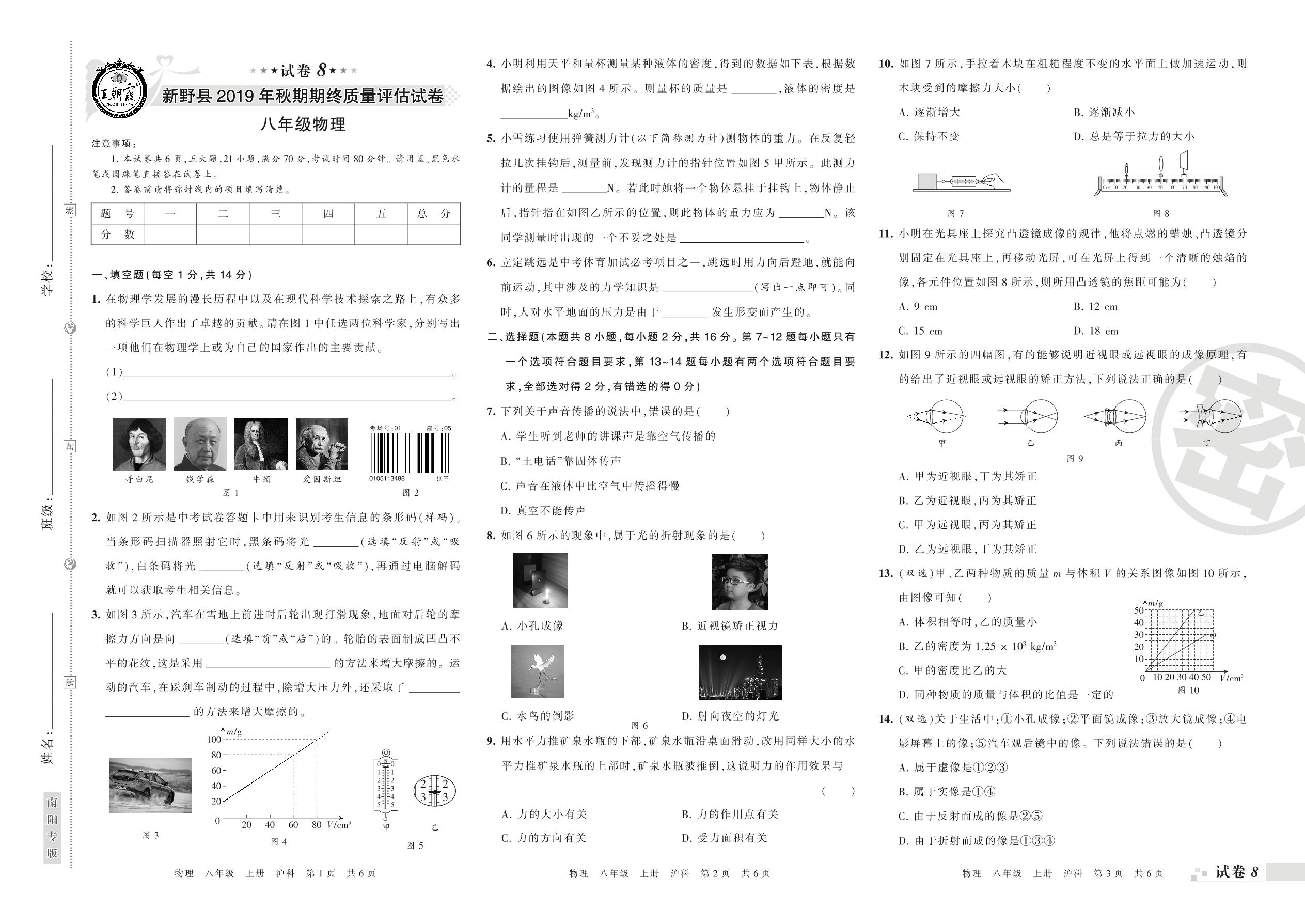 2019-2020学年第一学期南阳市新野县八年级物理试卷(沪科版)【8】