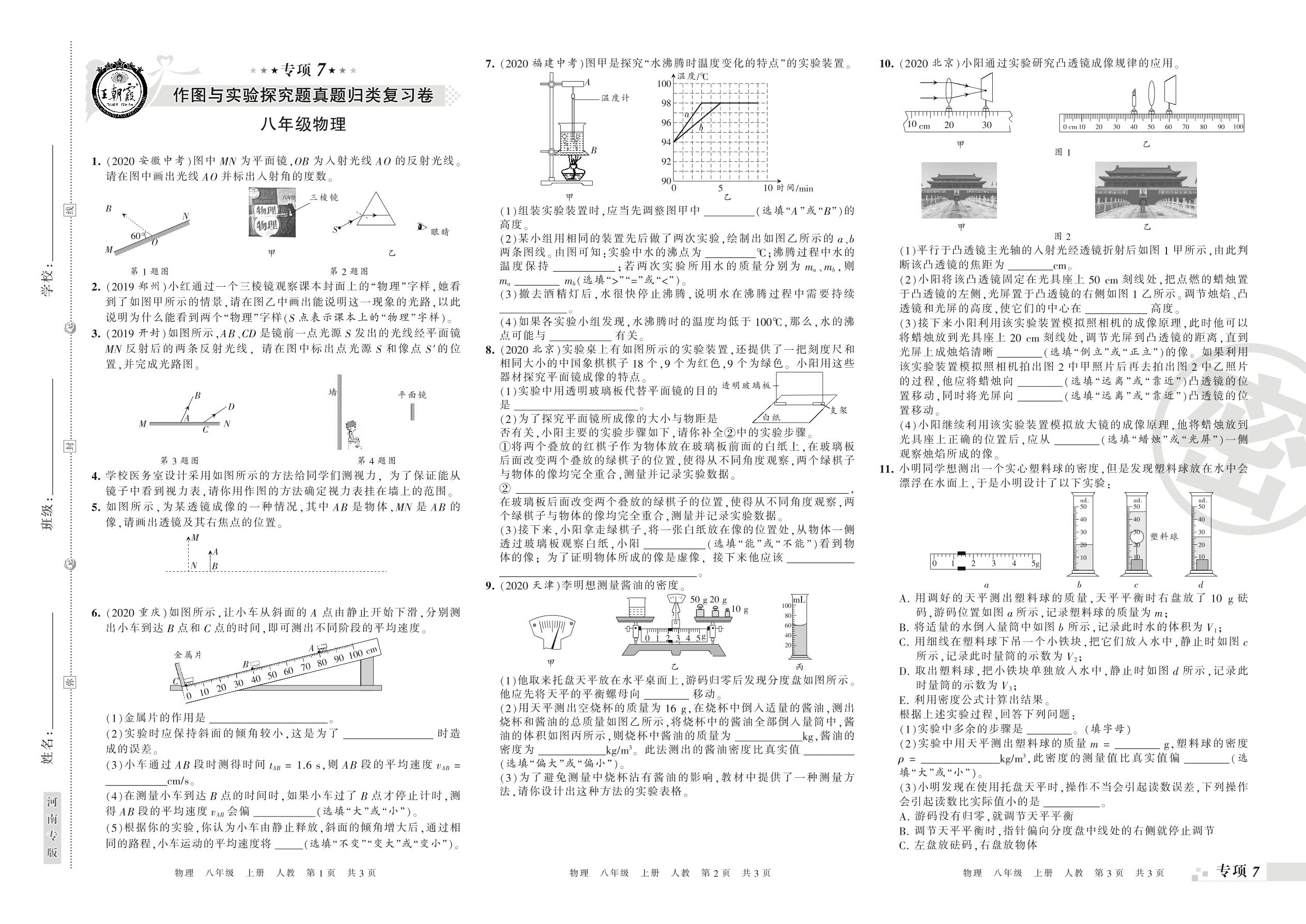 王朝霞期末专项卷——作图与实验探究题、综合应用题真题归类复习八年级上册物理(人教版)【0】