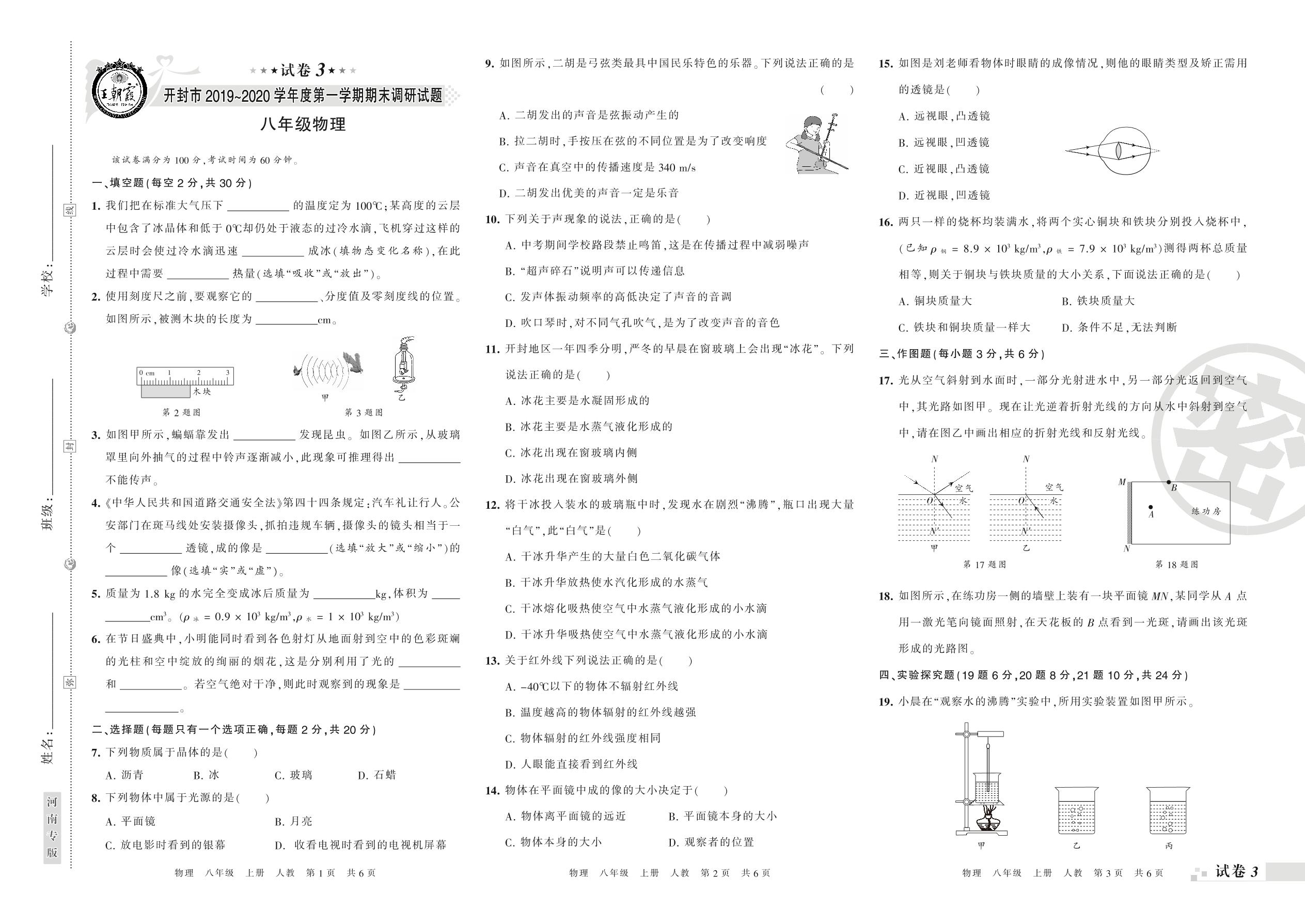 2019-2020学年第一学期开封市八年级物理试卷(人教版)【3】