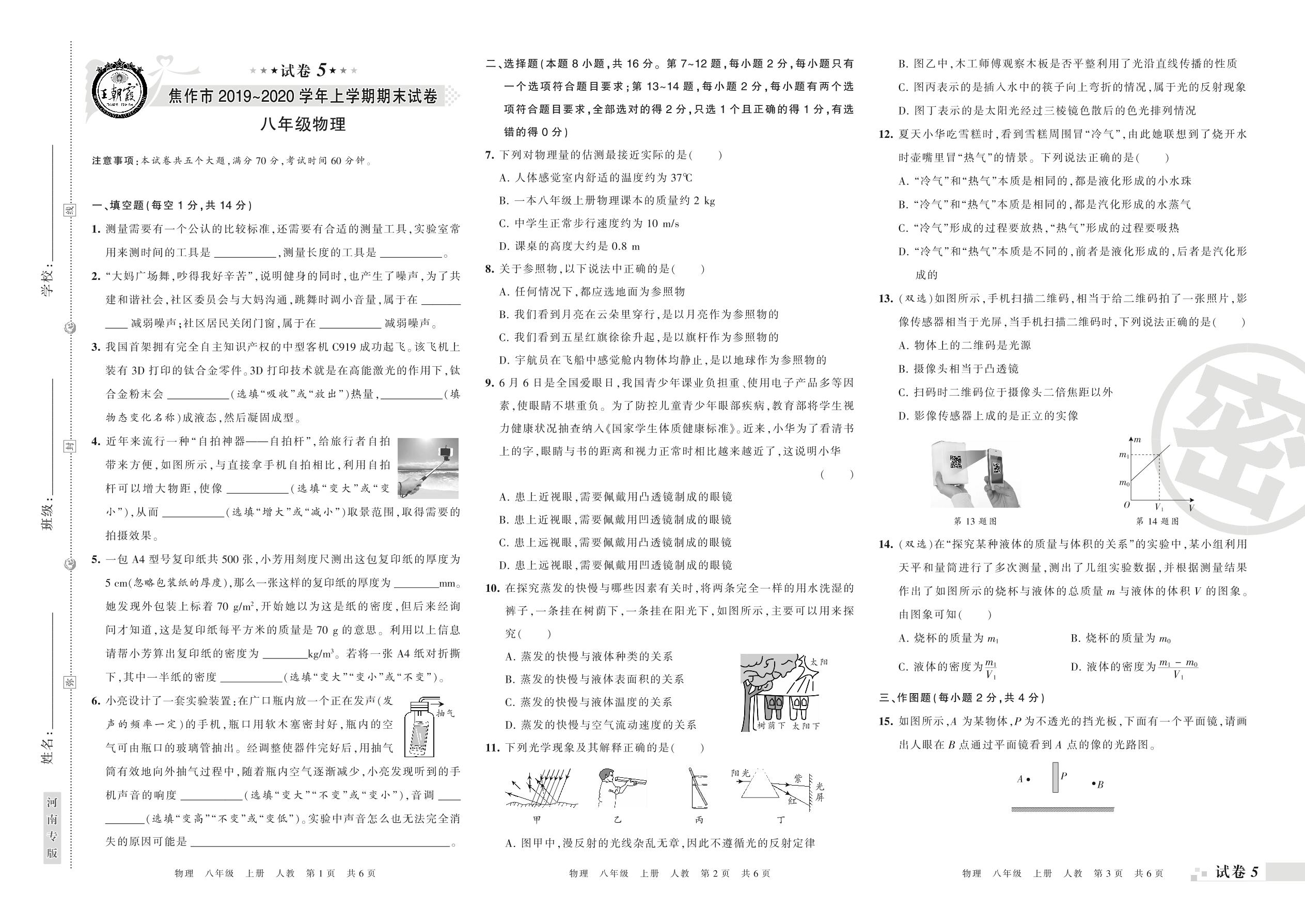 2019-2020学年第一学期焦作市八年级物理试卷(人教版)【5】