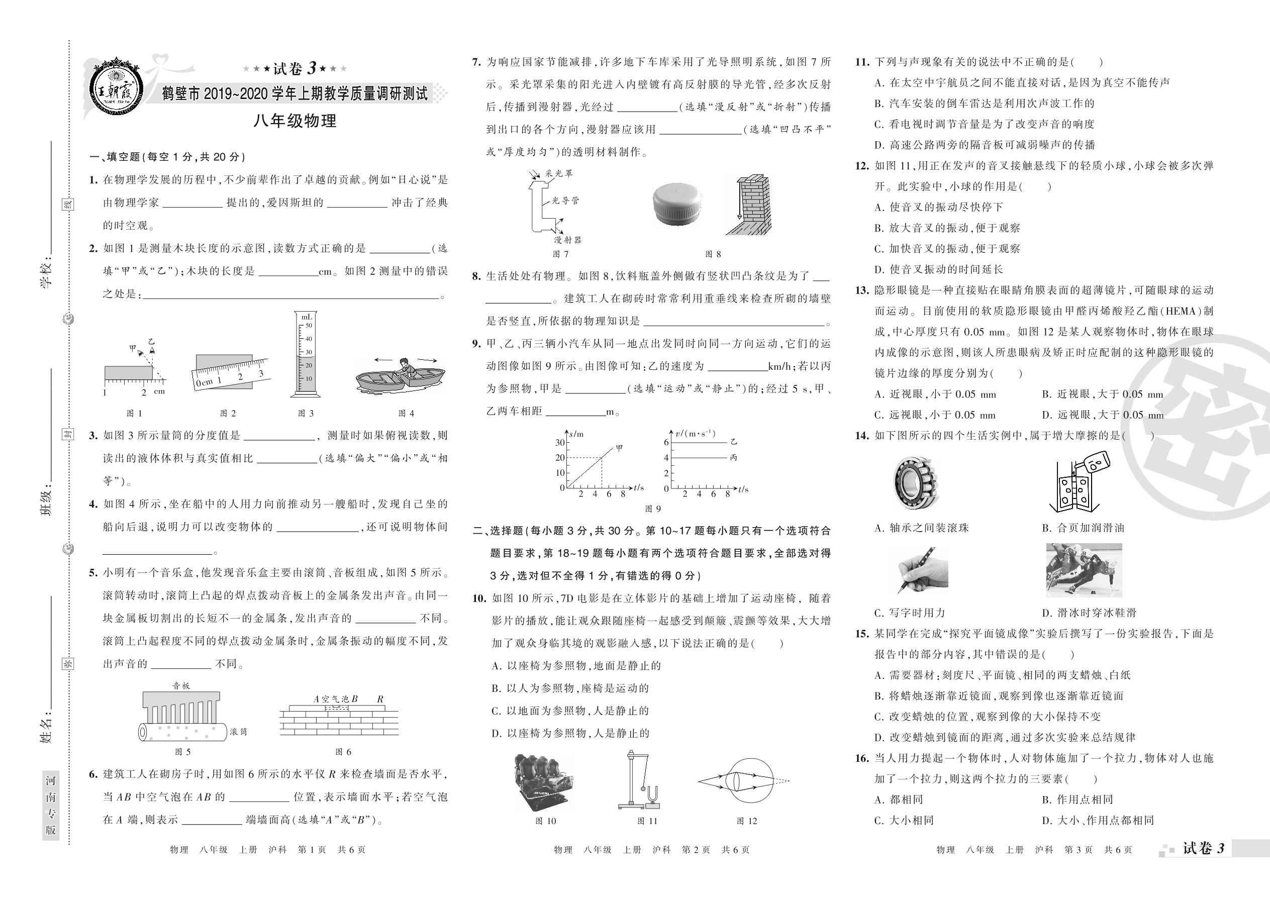 2019-2020学年第一学期鹤壁市八年级物理试卷(沪科版)【3】
