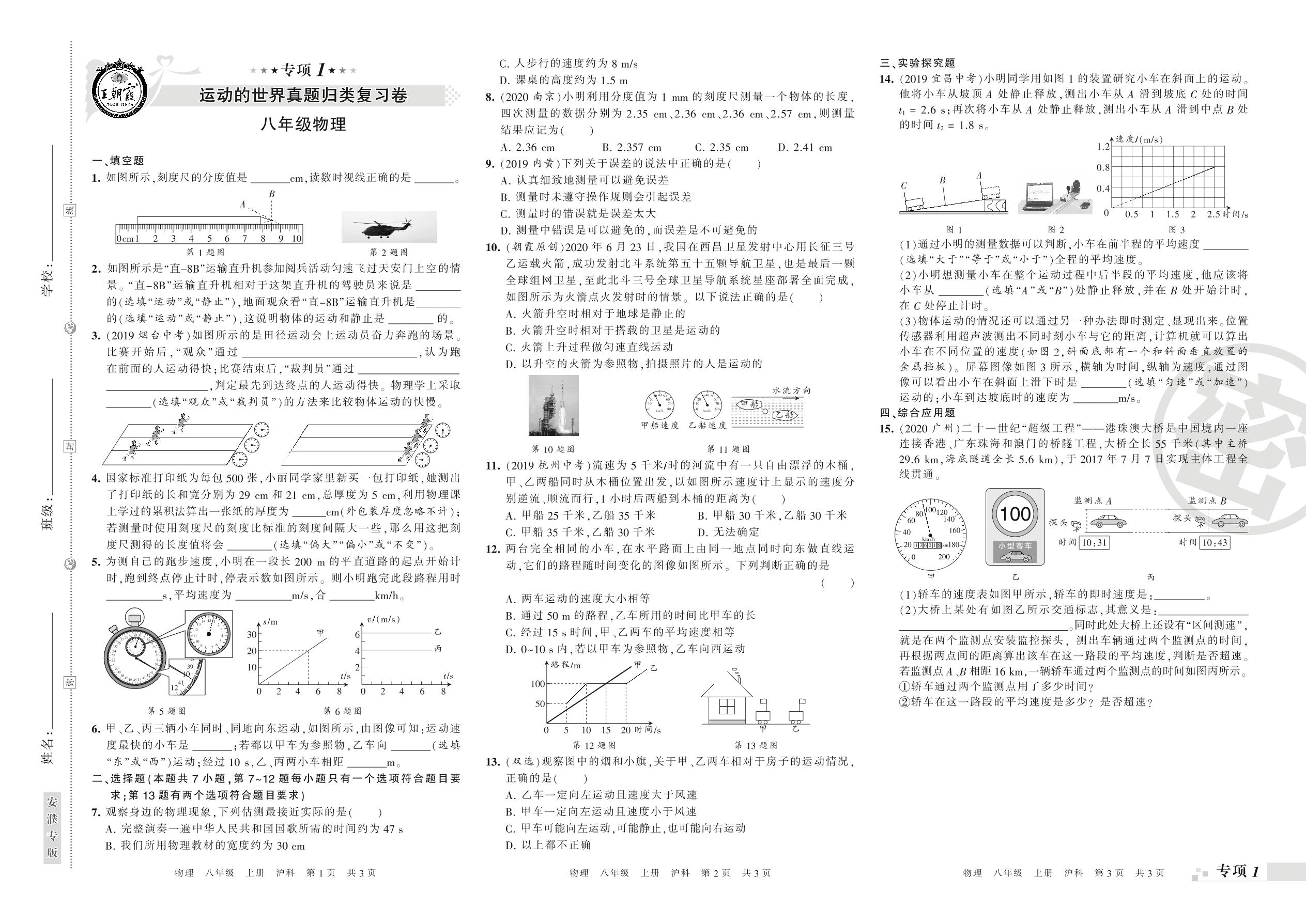 王朝霞期末专项卷——运动的世界、声的世界真题归类复习八年级上册物理(沪科版)_R210810161717【0】
