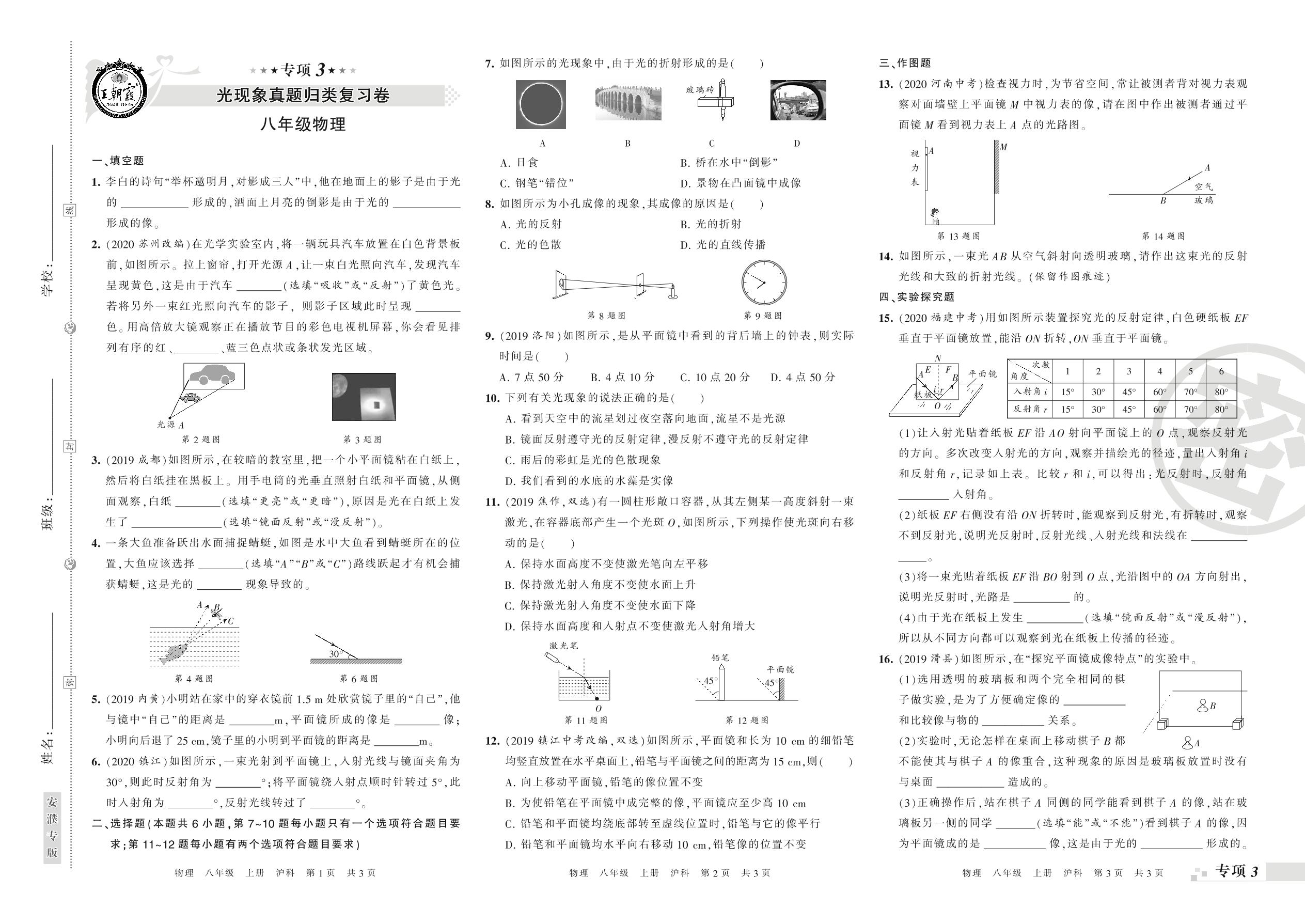 王朝霞期末专项卷——光现象、透镜及其应用真题归类复习八年级上册物理(沪科版)_R210810161724【0】