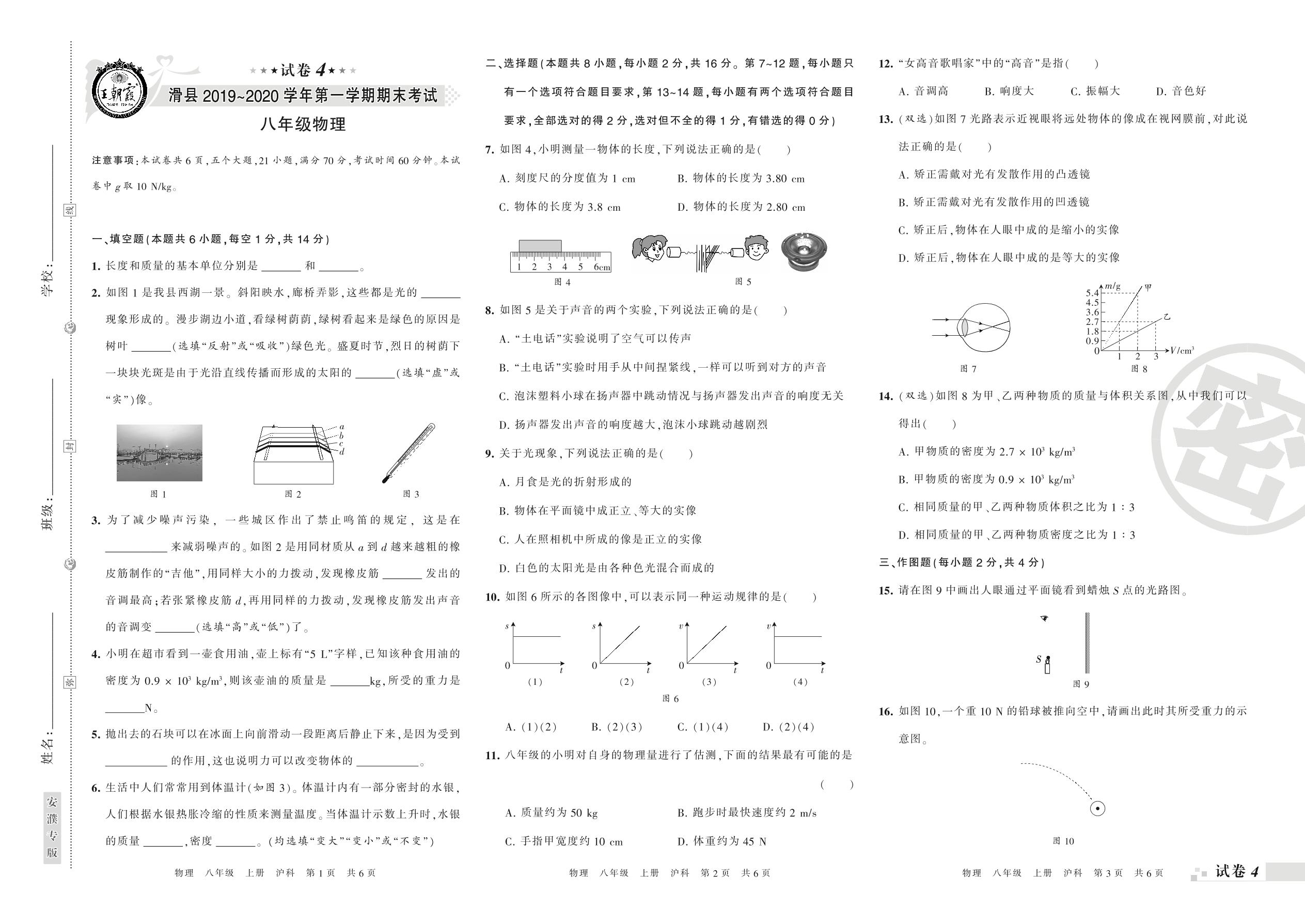 2019-2020学年第一学期安阳市滑县八年级物理试卷(沪科版)【4】