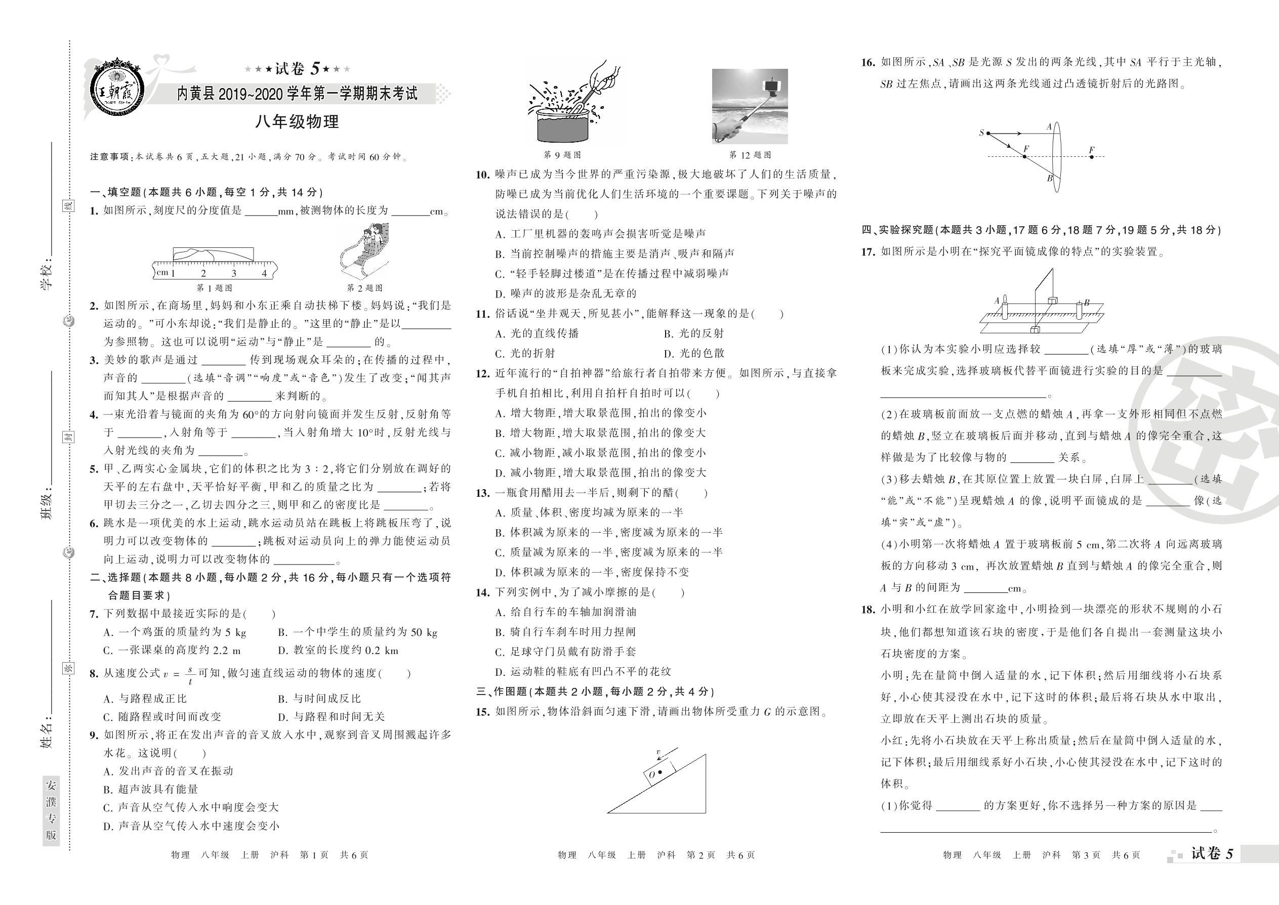 2019-2020学年第一学期安阳市内黄县八年级物理试卷(沪科版)【5】