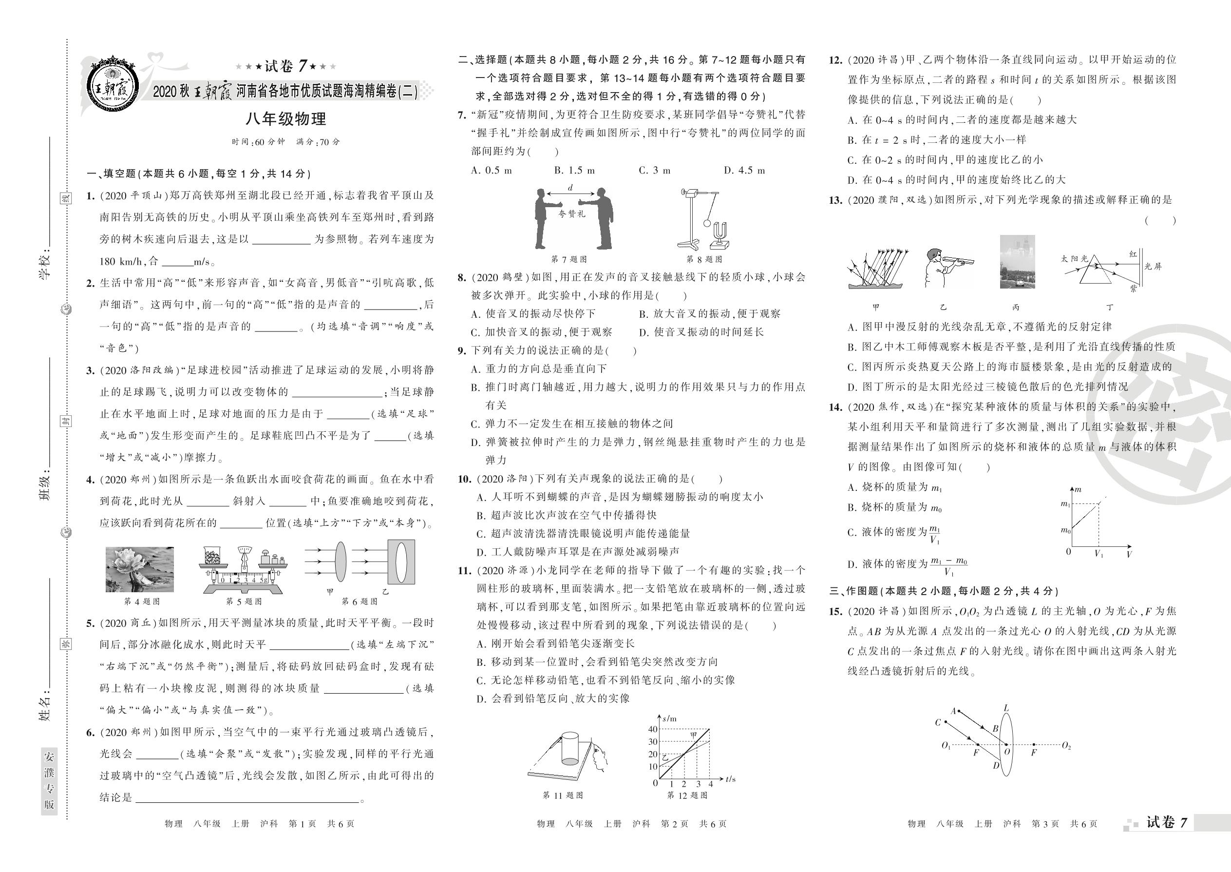 王朝霞海淘期末精编卷八年级上册物理(沪科版)【7】