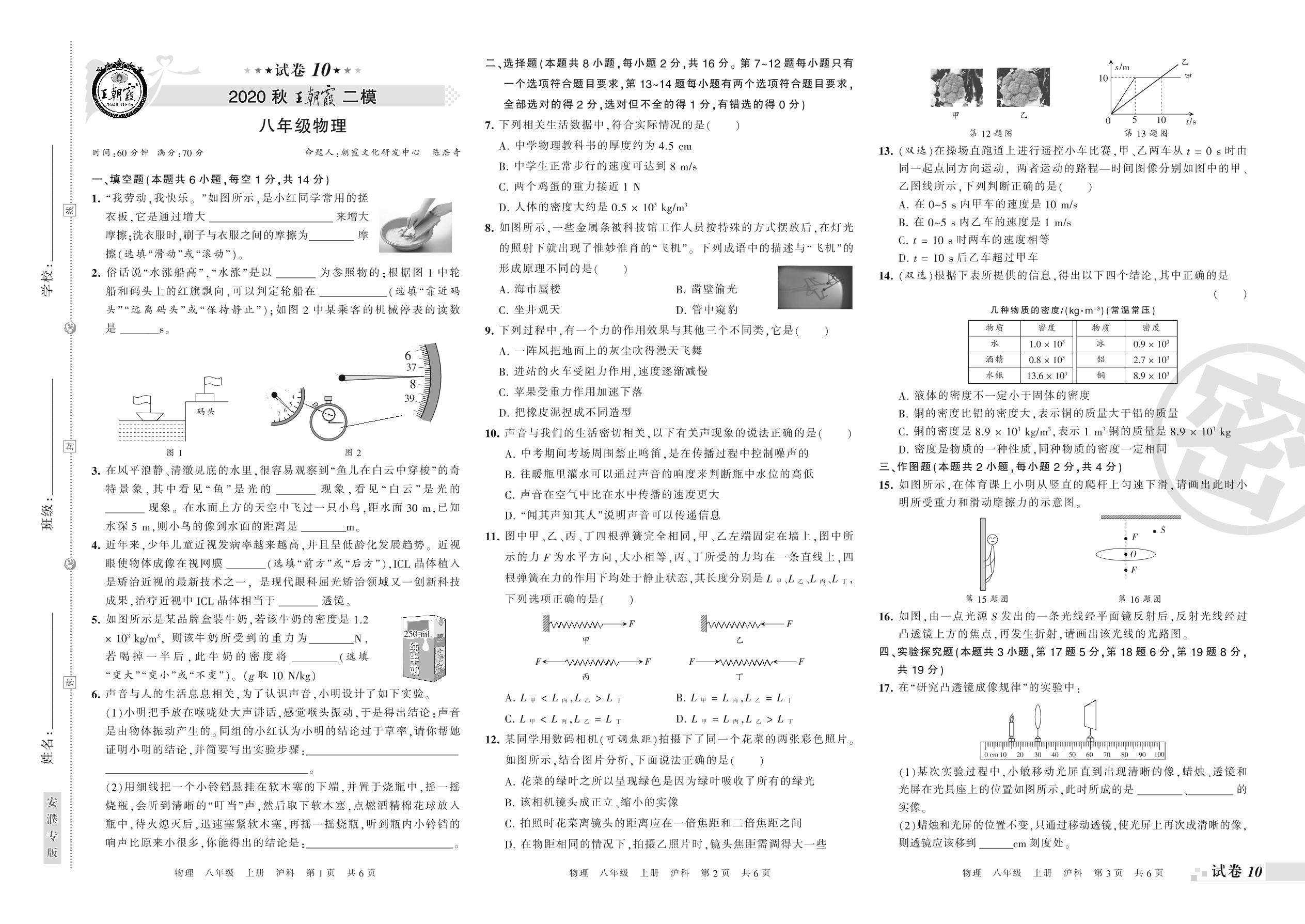 2020-2021学年第一学期王朝霞期末模拟卷八年级物理(沪科版)_R210810161917【10】