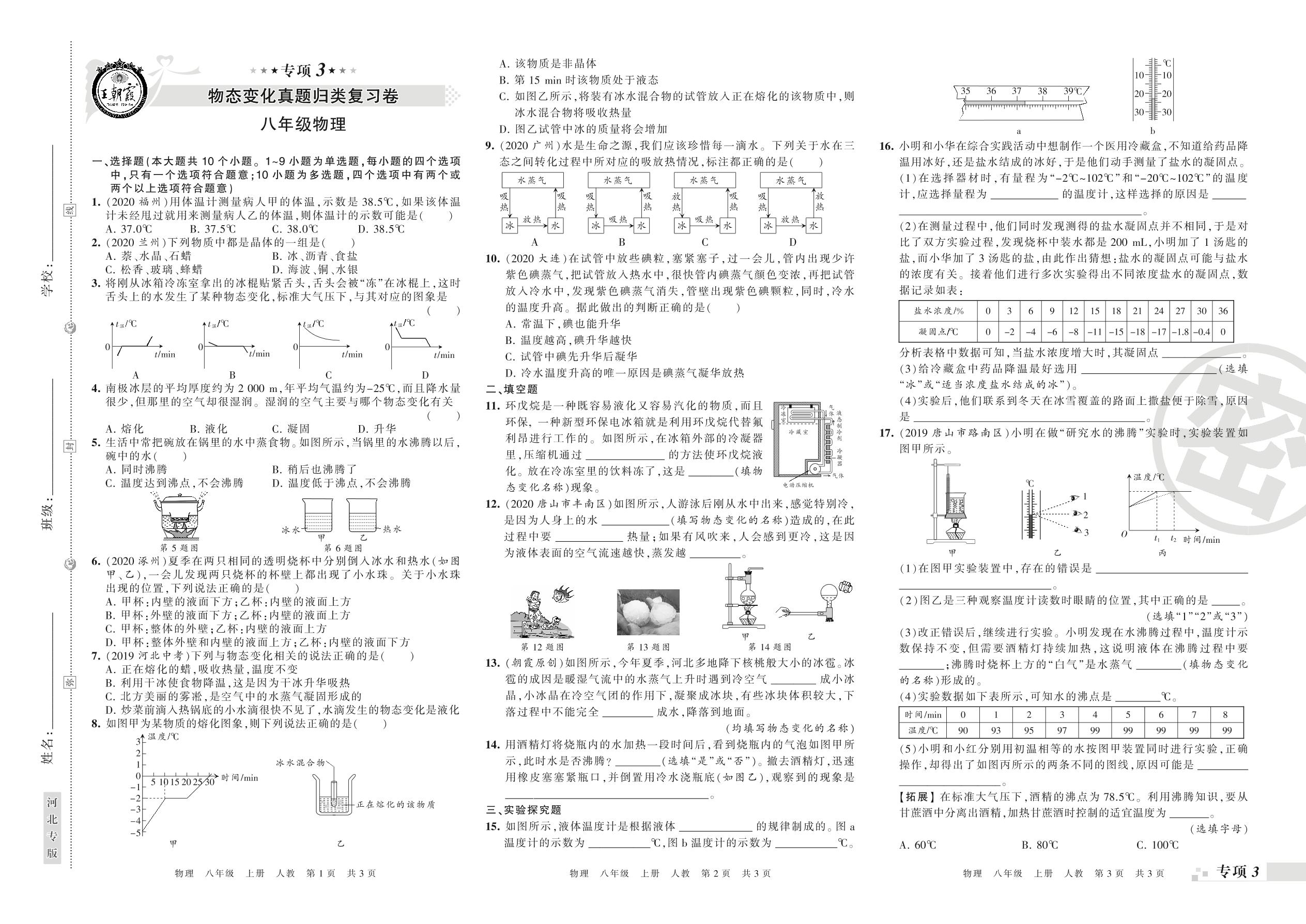 王朝霞期末专项卷——物态变化、光现象真题归类复习八年级上册物理(人教版)【0】