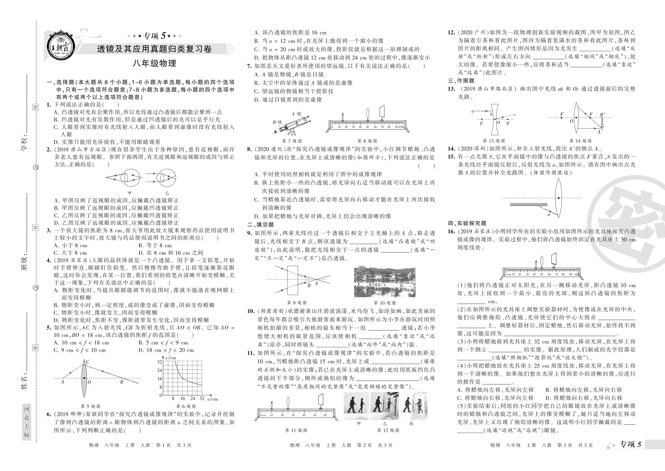 王朝霞期末专项卷——透镜及其应用、质量与密度真题归类复习八年级上册物理(人教版)【0】