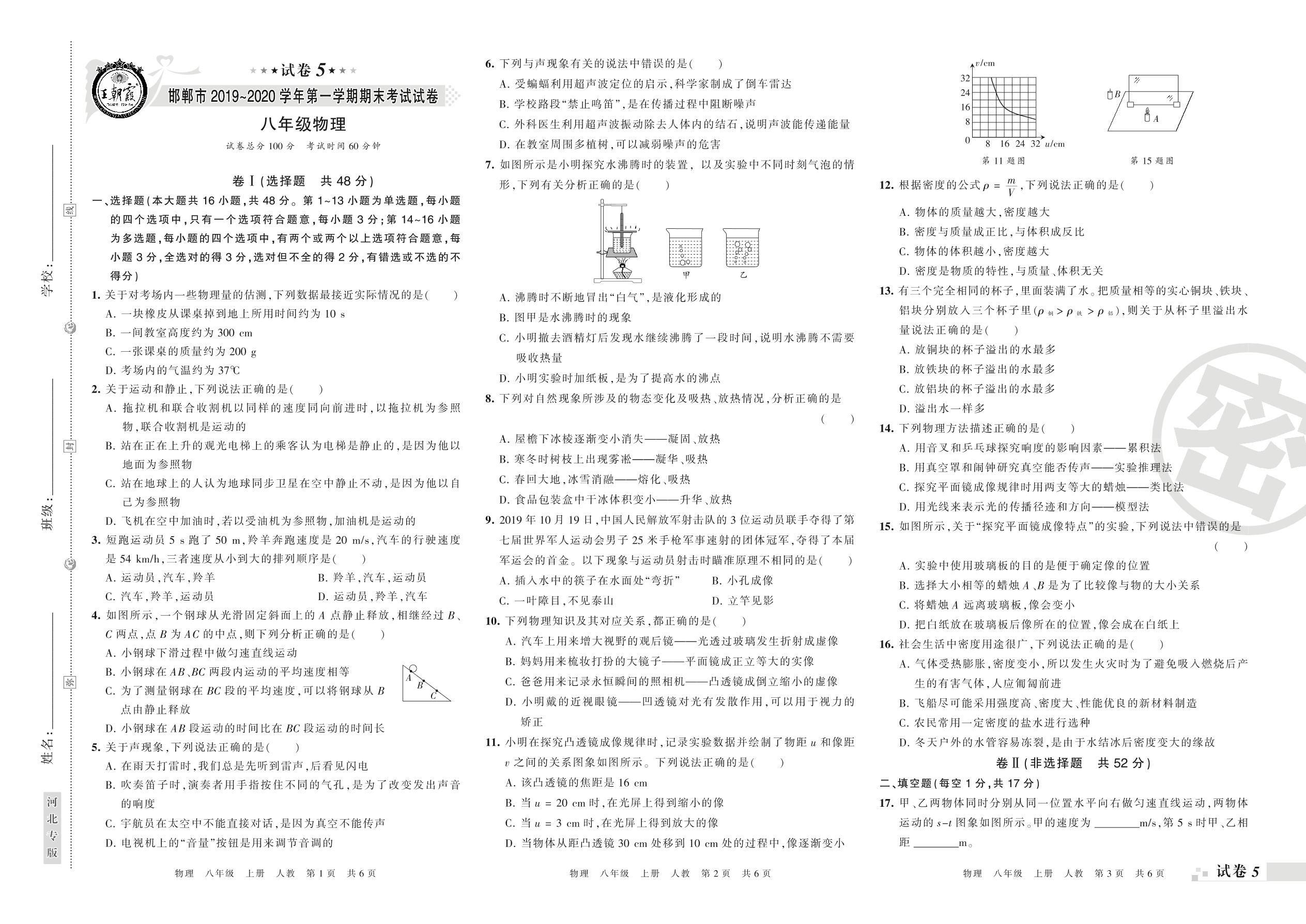 2019-2020学年第一学期邯郸市八年级物理试卷(人教版)【5】