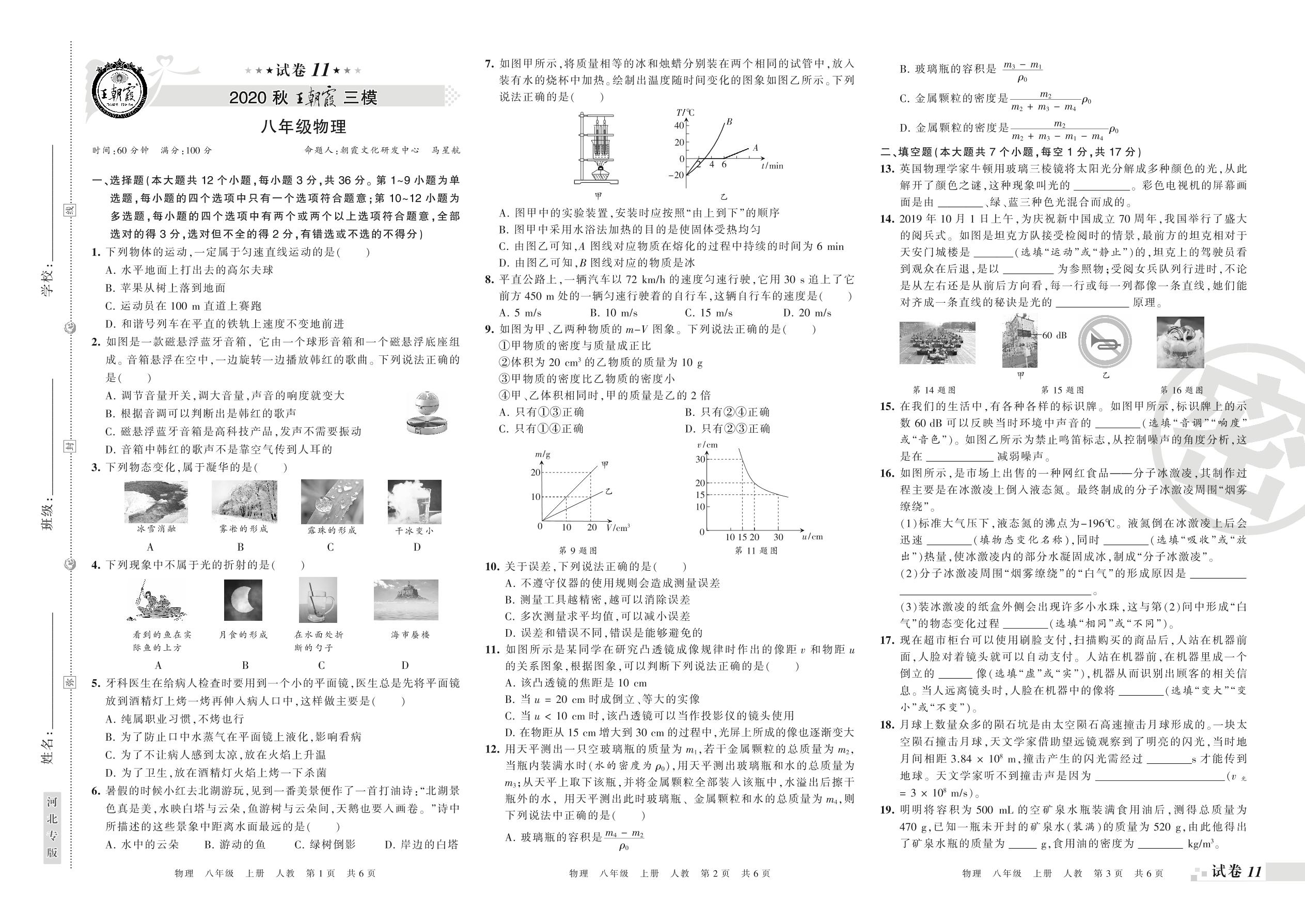 王朝霞期末模拟卷八年级上册物理(人教版)【11】
