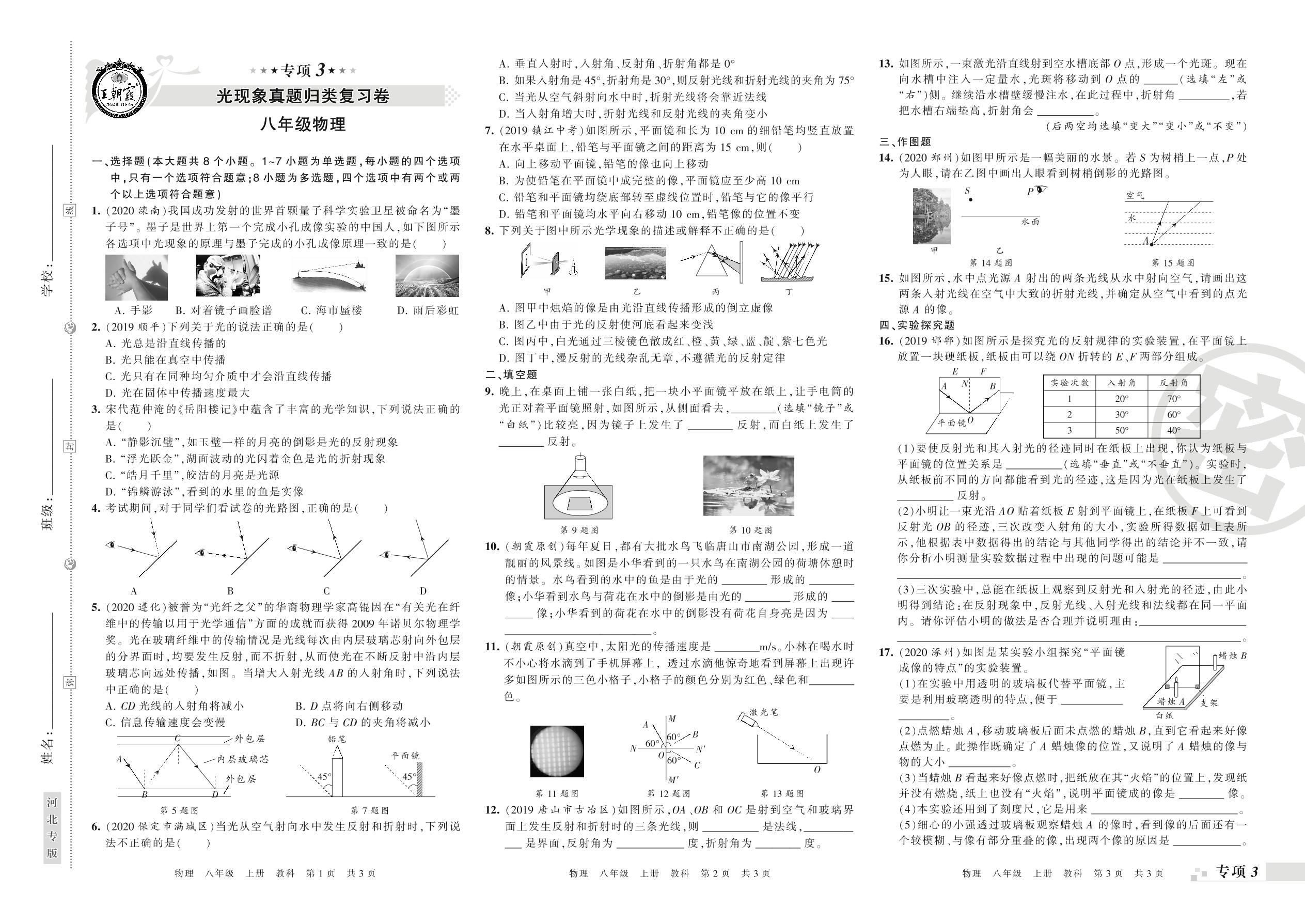 王朝霞期末专项卷——光、透镜及其应用真题归类复习八年级上册物理(教科版)【0】
